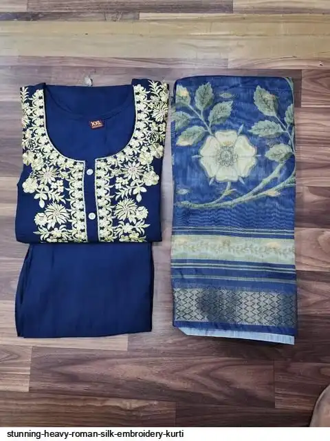 STUNNING HEAVY ROMAN SILK EMBROIDERY KURTI D