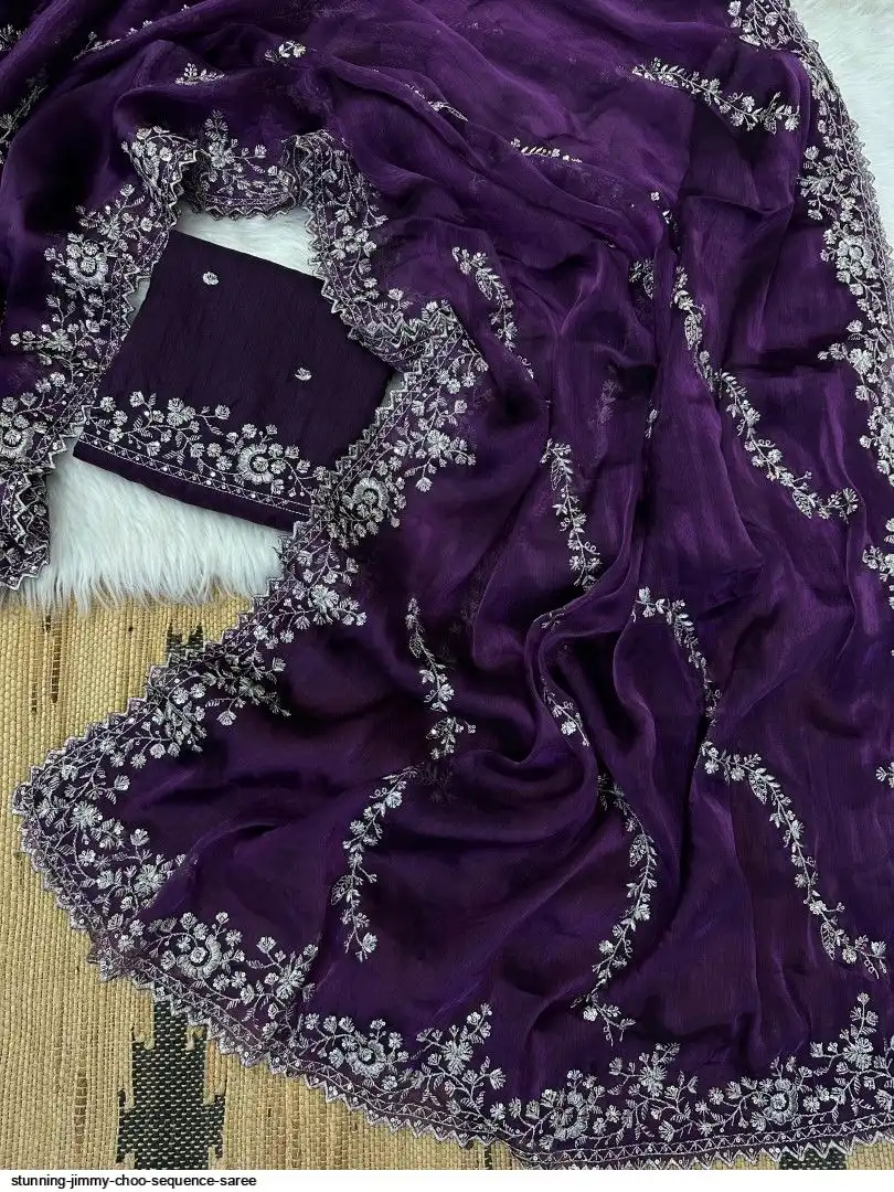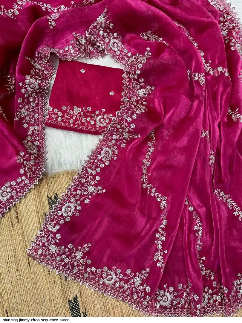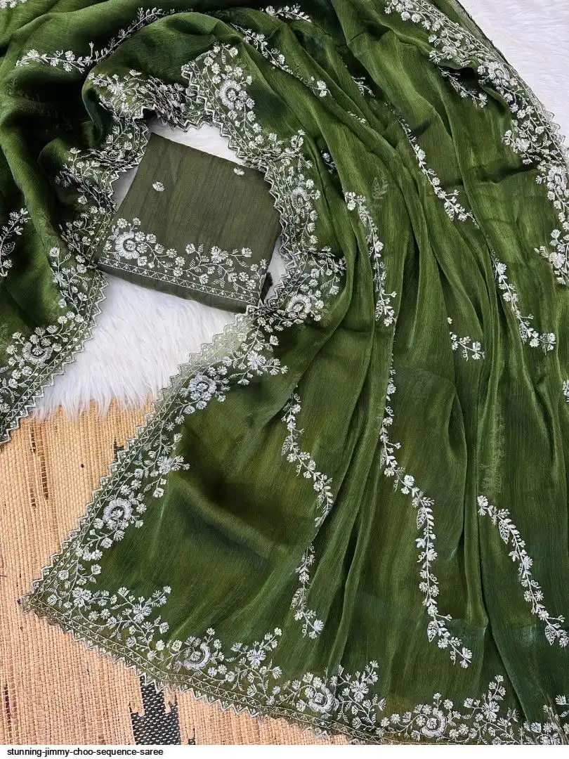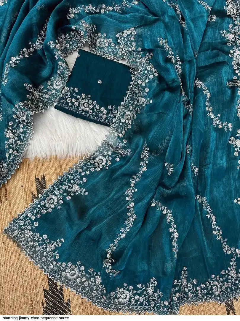 Chiffon jimmy choo saree with beautiful silver jari cover with hand touch sequence and silk blouse with work