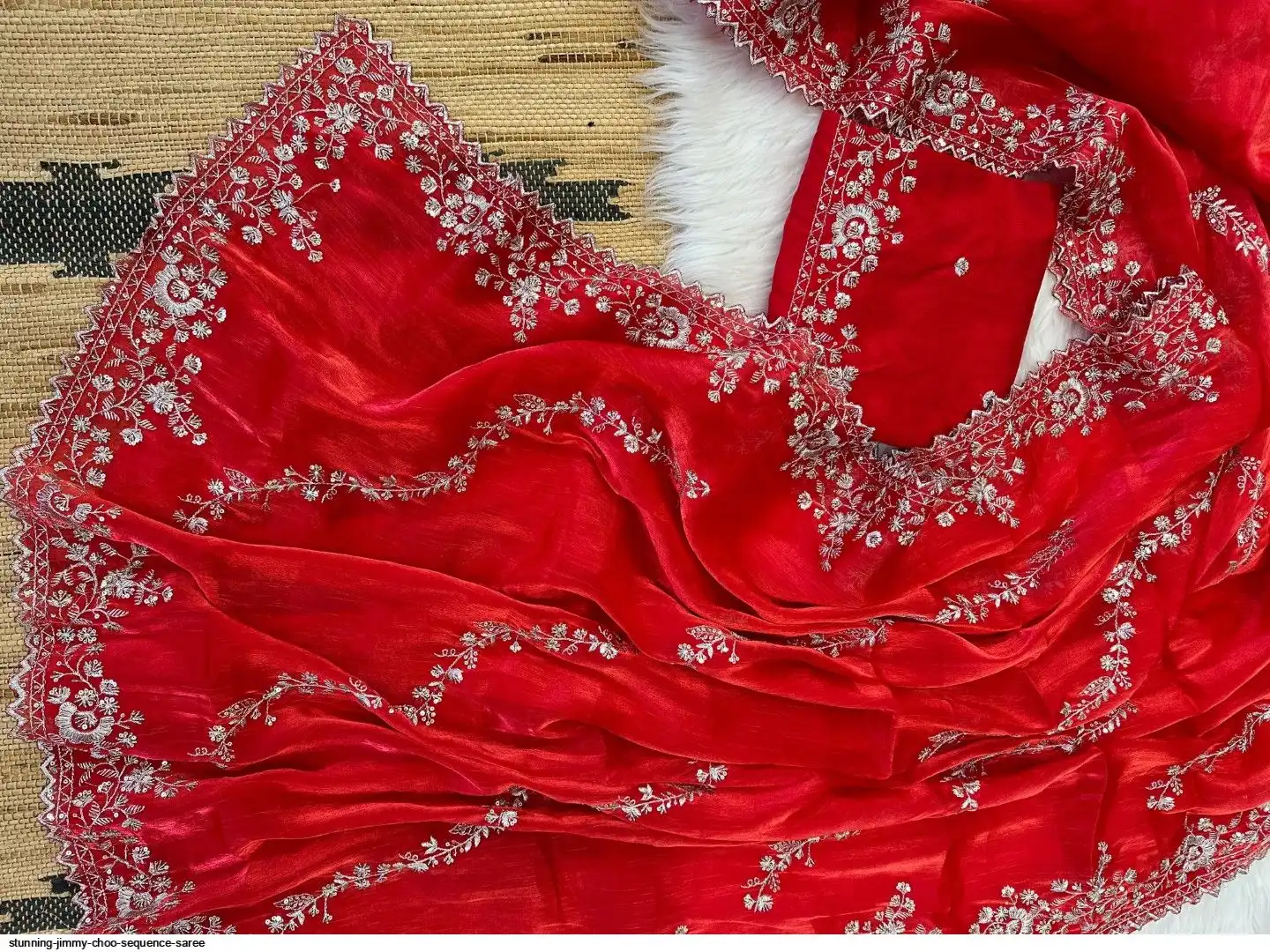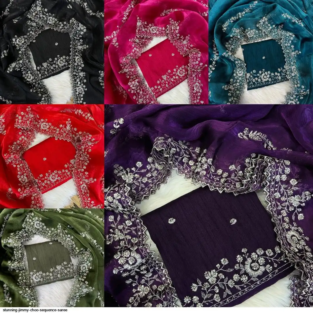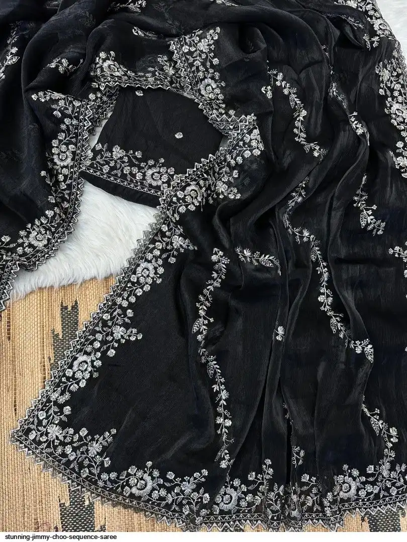 Chiffon jimmy choo saree with beautiful silver jari cover with hand touch sequence and silk blouse with work