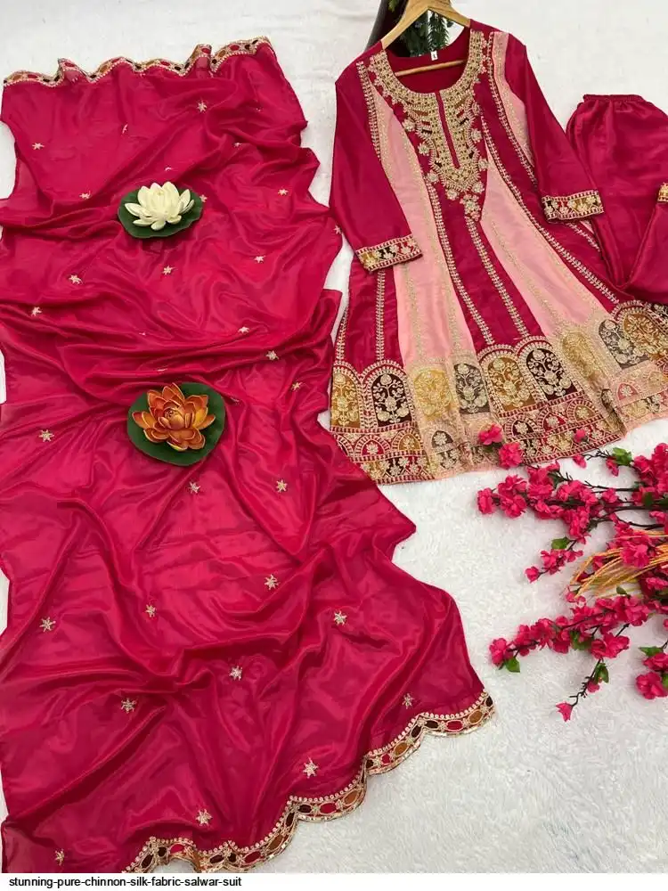 Bottom Fabric:- pure Chinon Silk Fabric (Fully stitched)