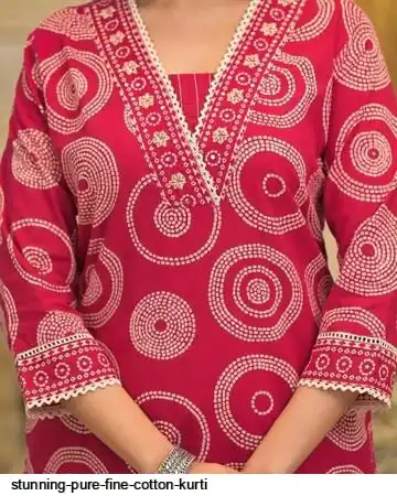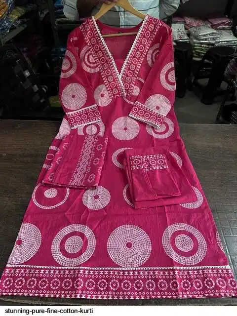 Pure fine Cotton fabric Kurti with Pant with cotton 100-100 Dupatta Nack Hand work