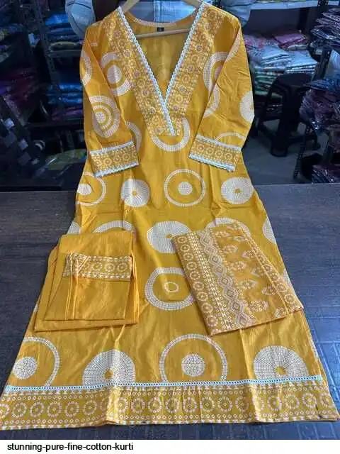 Pure fine Cotton fabric Kurti with Pant with cotton 100-100 Dupatta Nack Hand work