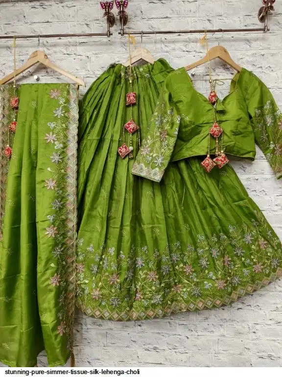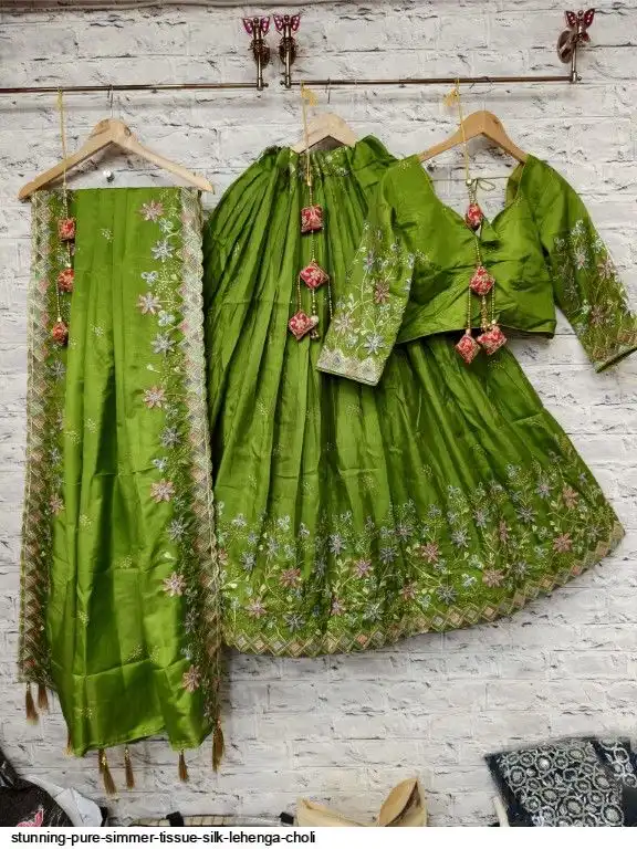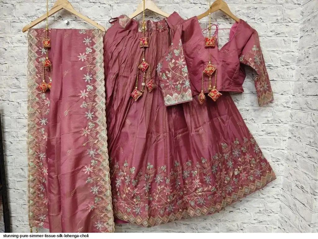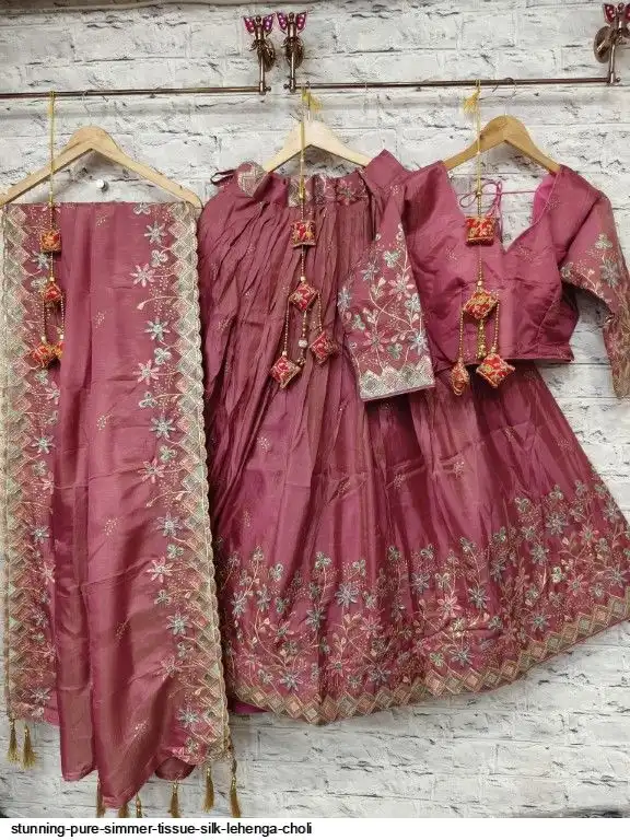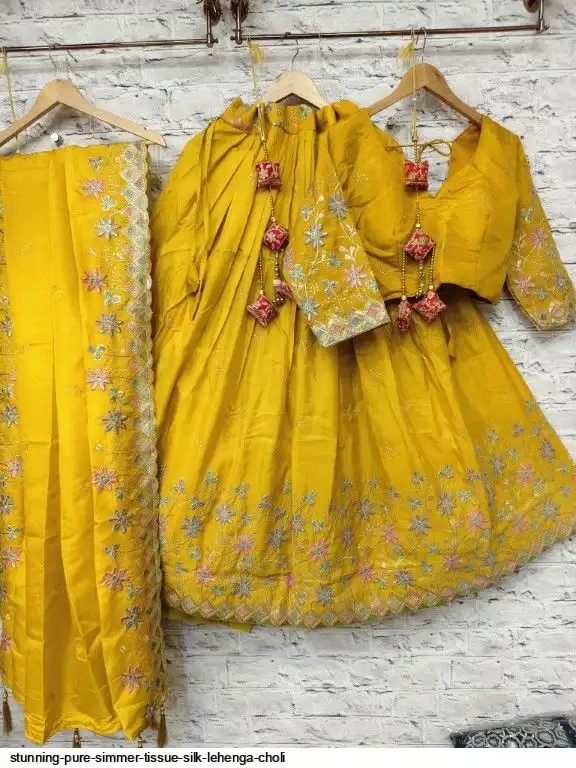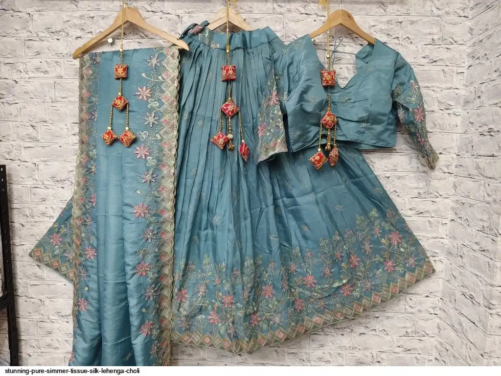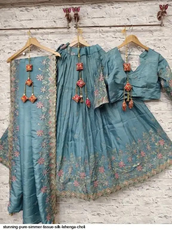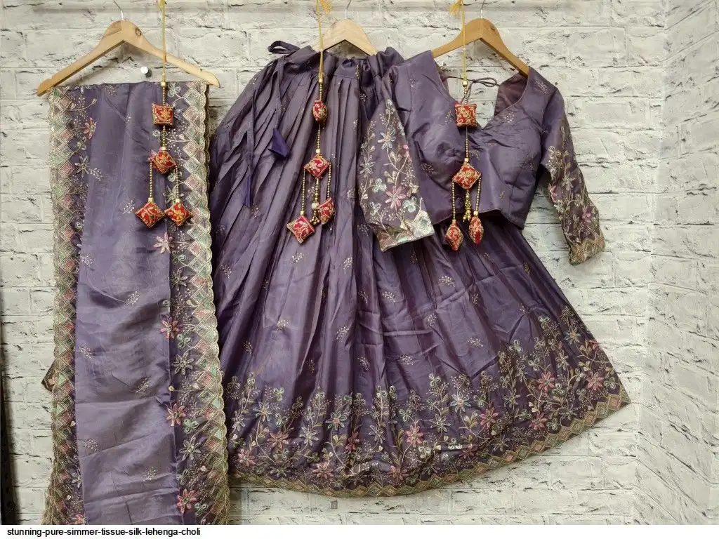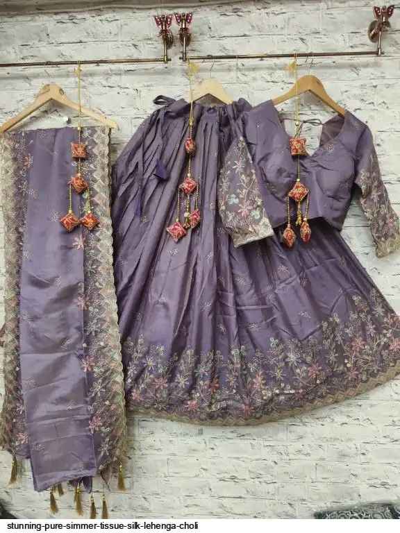 Pure simmer tissue silk sequence and multi thread work chaniya choli
