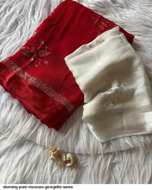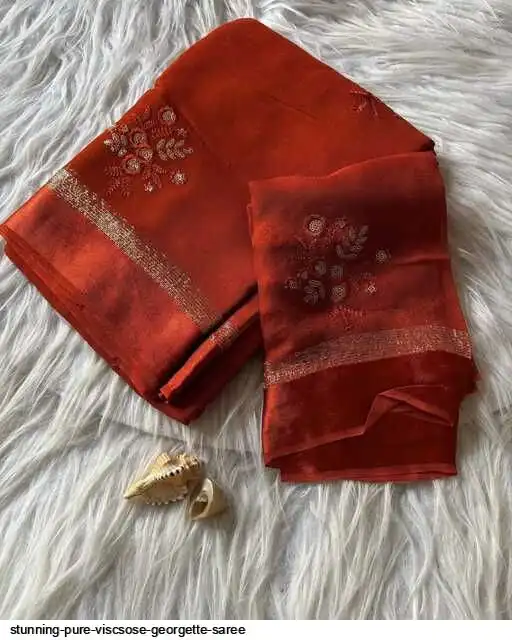 Pure Viscsose Georgette Dying Saree with Satin Patta border with all over beautiful sequence hart Embroidery work