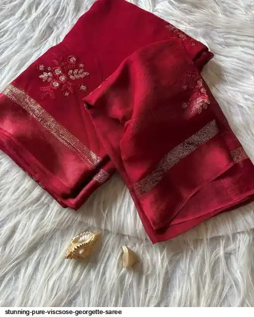 Pure Viscsose Georgette Dying Saree with Satin Patta border with all over beautiful sequence hart Embroidery work