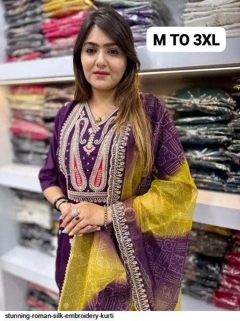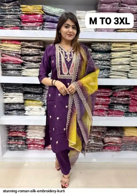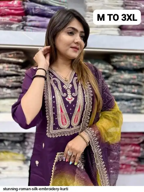 STUNNING ROMAN SILK EMBROIDERY KURTI B