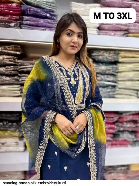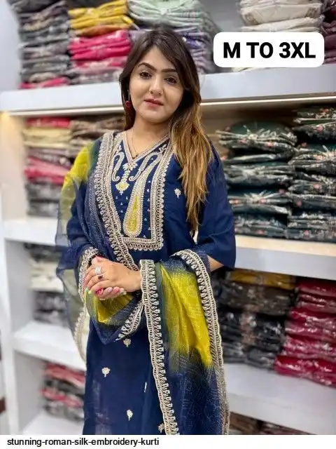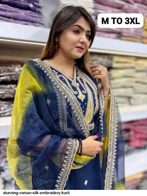 STUNNING ROMAN SILK EMBROIDERY KURTI C