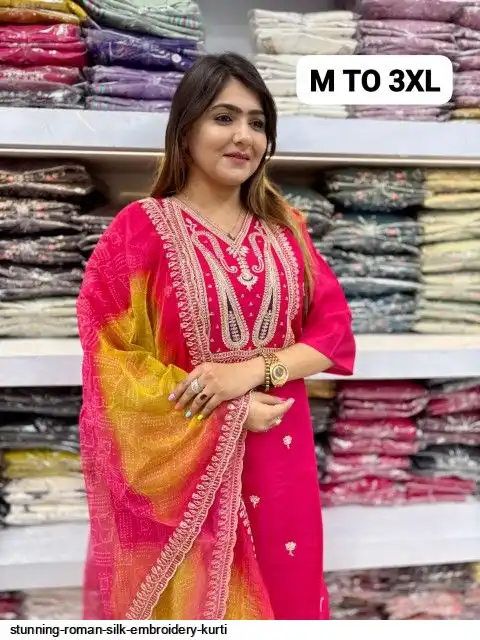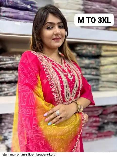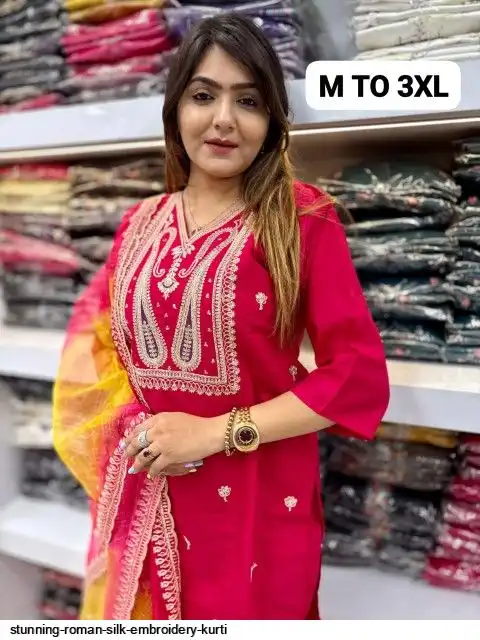 STUNNING ROMAN SILK EMBROIDERY KURTI D