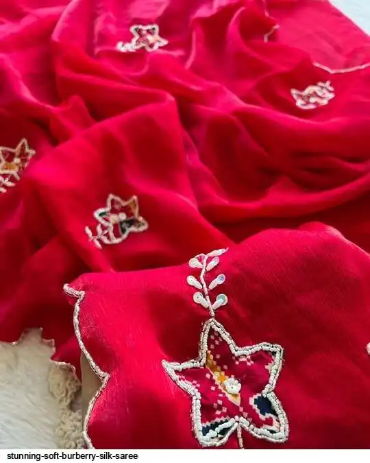 Soft Burberry Silk Saree With Fancy Handwork Work
