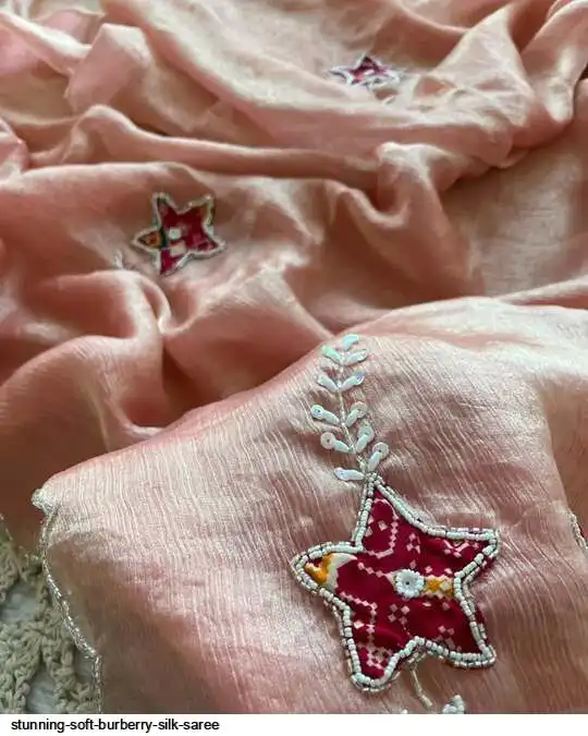 Soft Burberry Silk Saree With Fancy Handwork Work