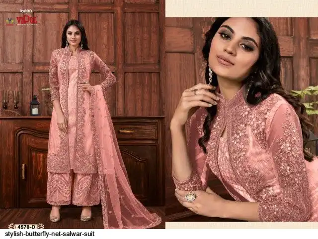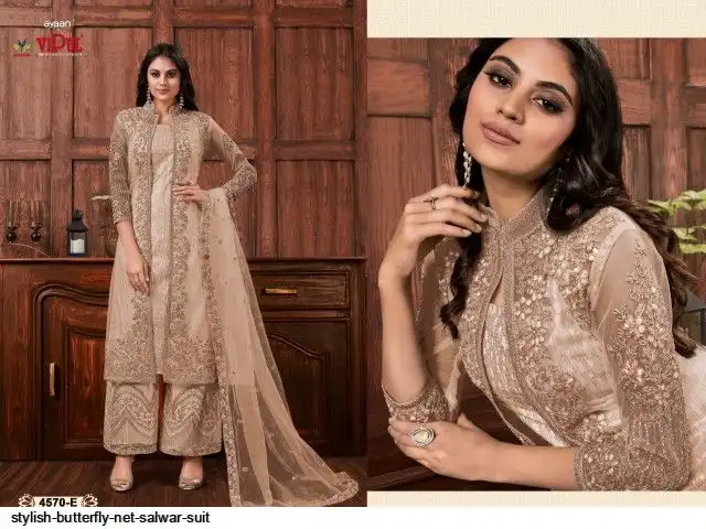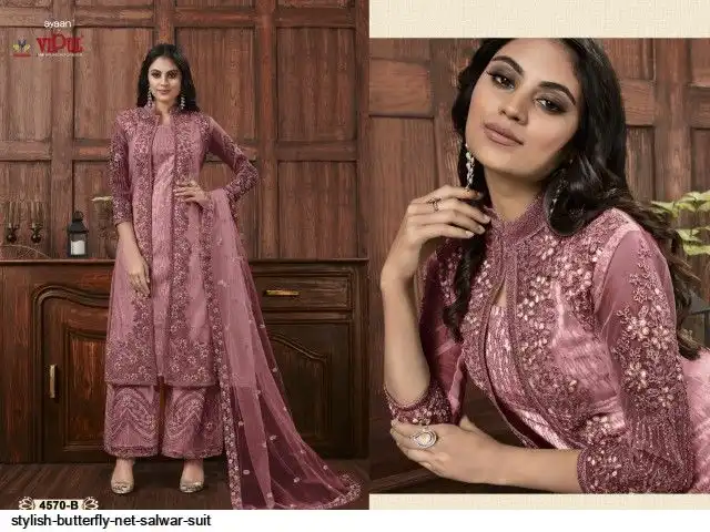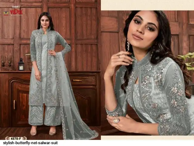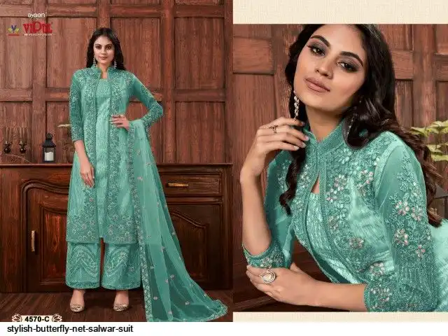 TOP :- Heavy ButterFly Net With Multi Thread & Jari With Glitter Sequence & Codding Embroidery Stich Work