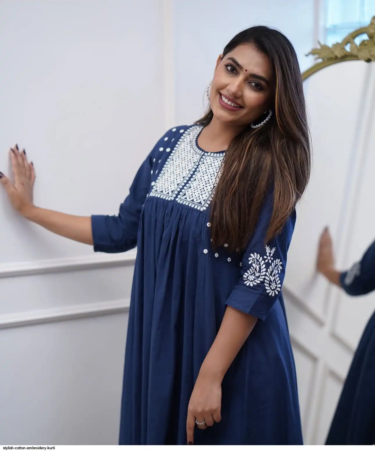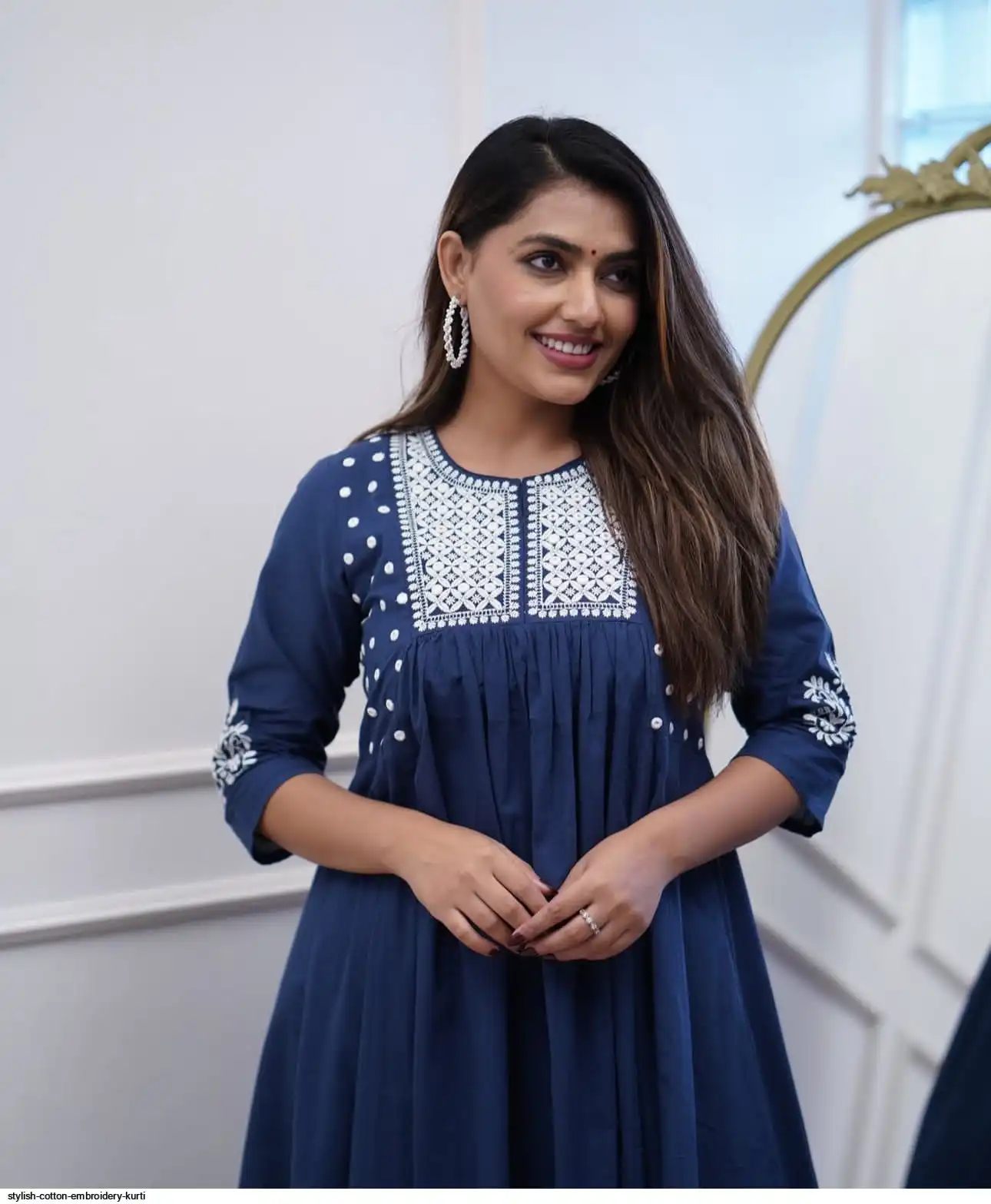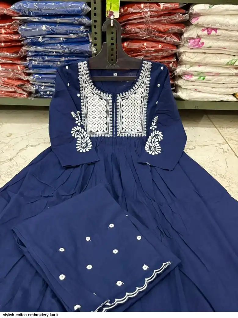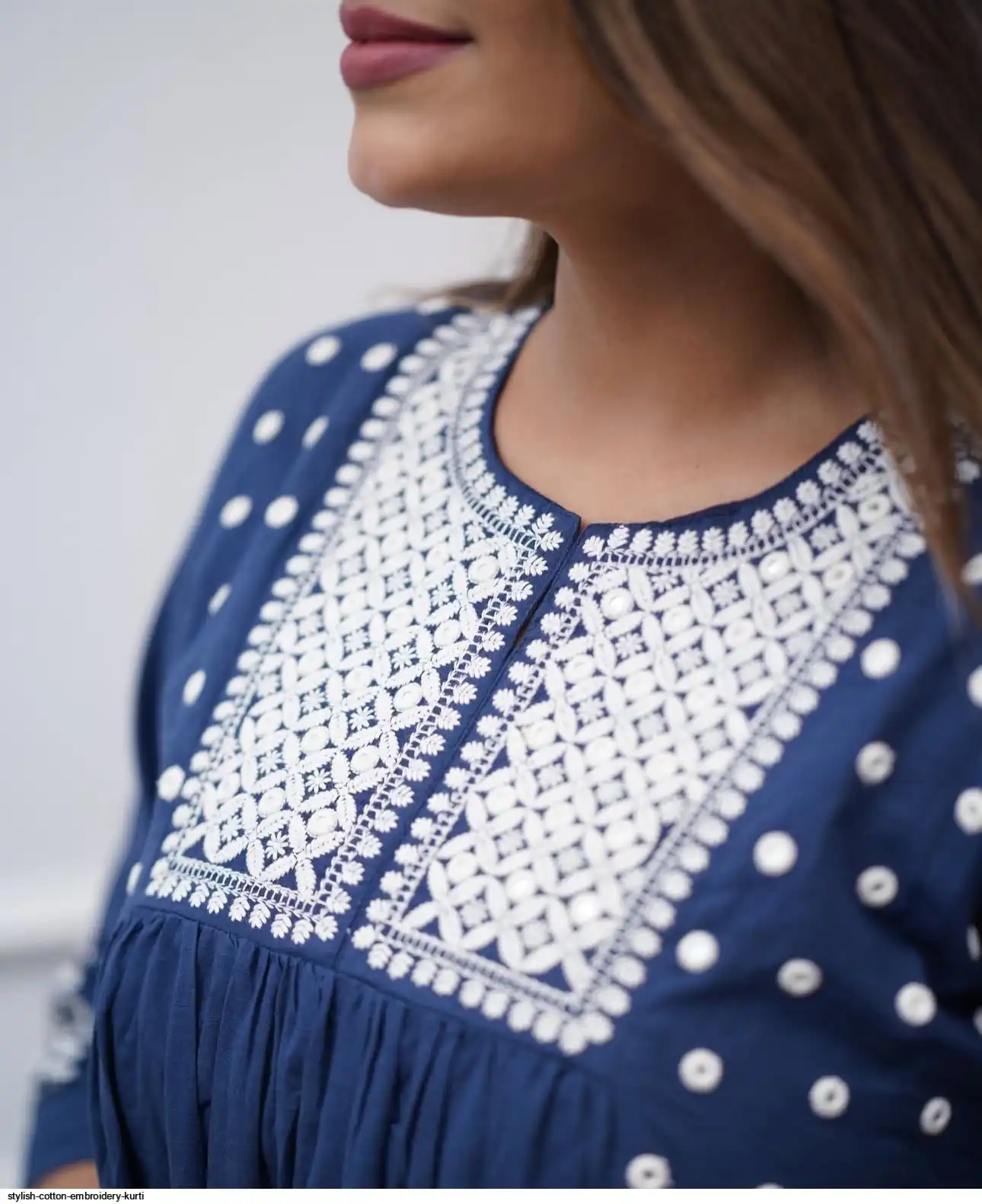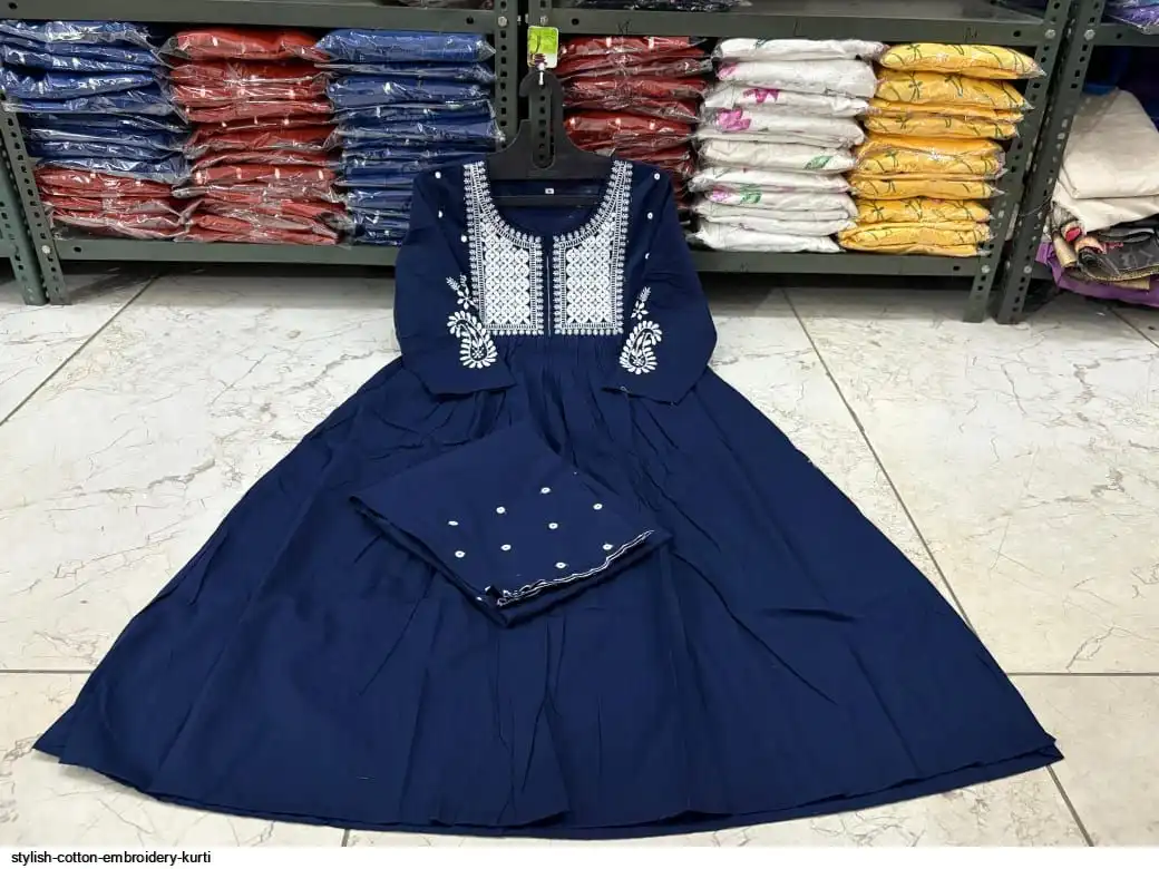 Work - Embroidery work on Kurti neck , front side , sleeve and cutwork embroidered work on matching Pant