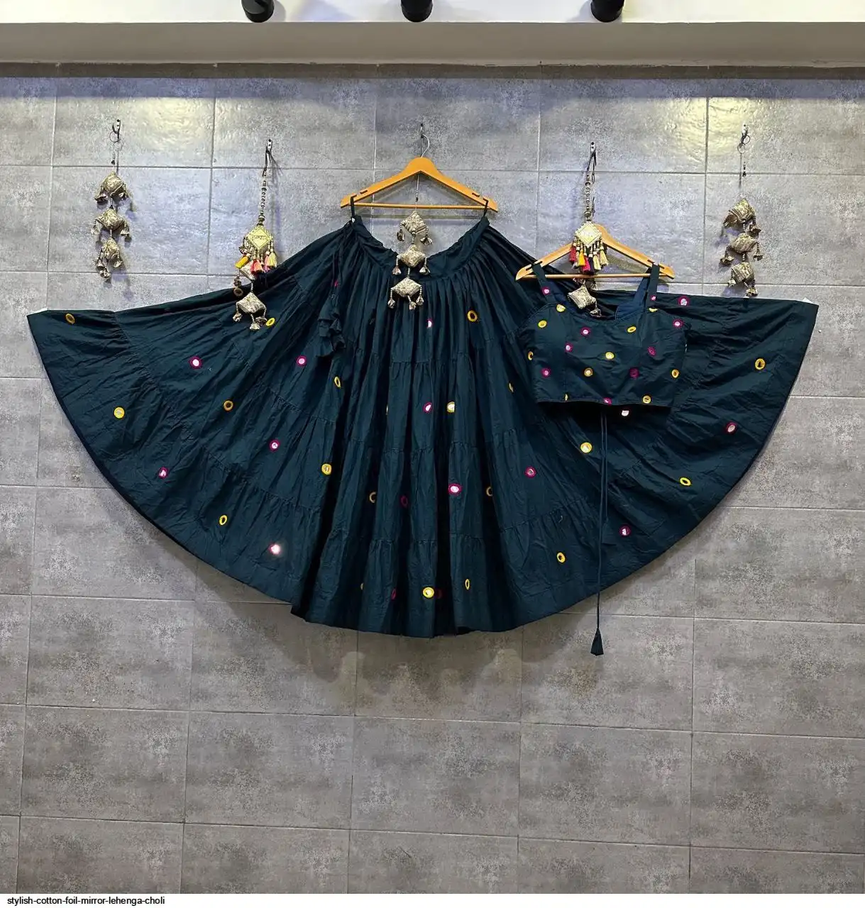 Pure dhabu cotton foil mirror work chaniya and blouse