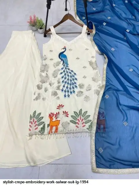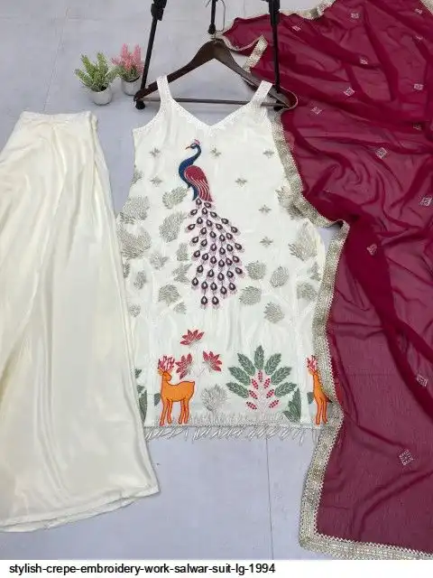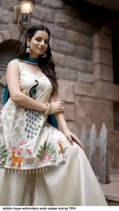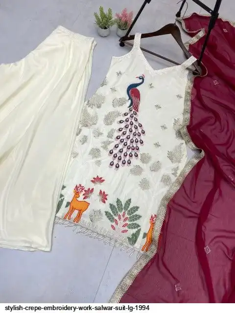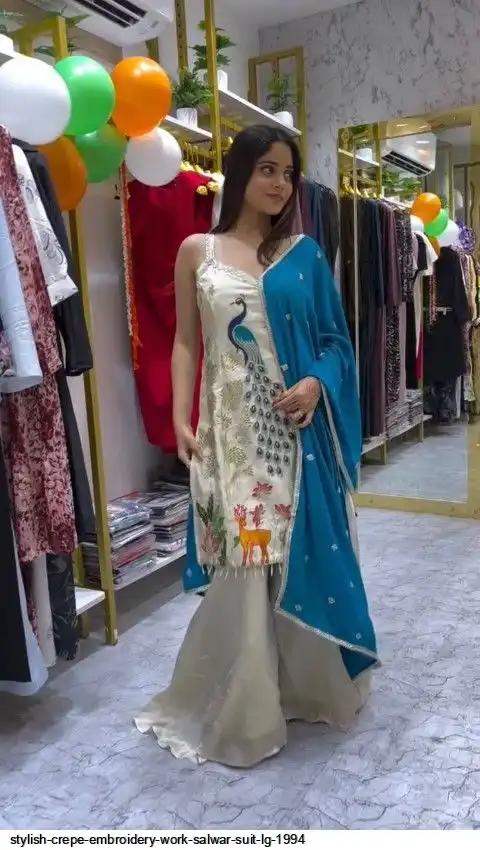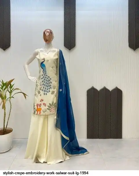 EXCLUSIVE PLAZZO PAIR WITH EMBROIDERED PEACOCK