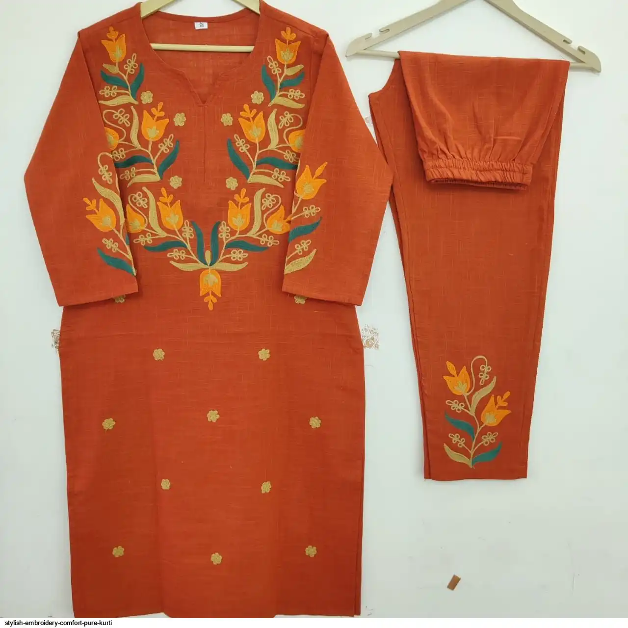 look stylish and walk in comfort with our new beautiful embroidery work kurta set perfect for your wardrobe and wear this office , daily & Kitty party look stylish & charming
