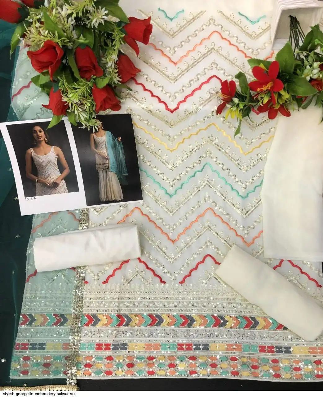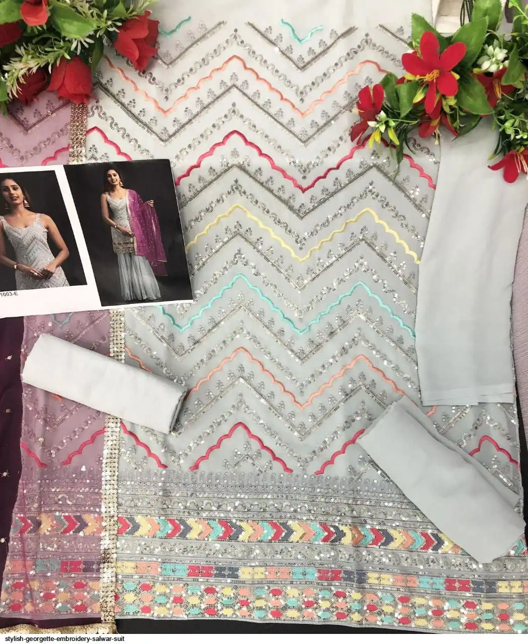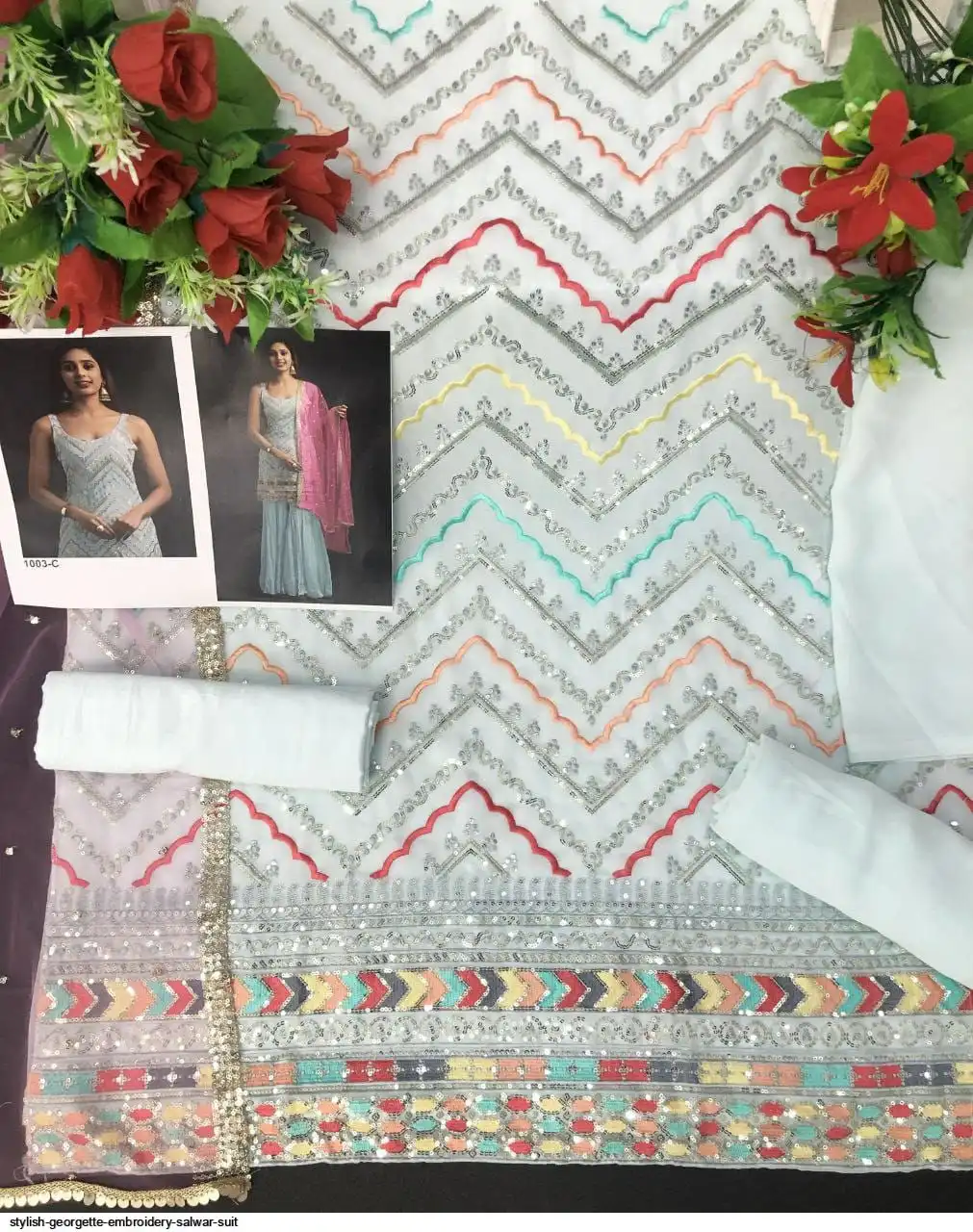 Top :- Heavy Faux Georgette With Embroidery Work With Siquance work