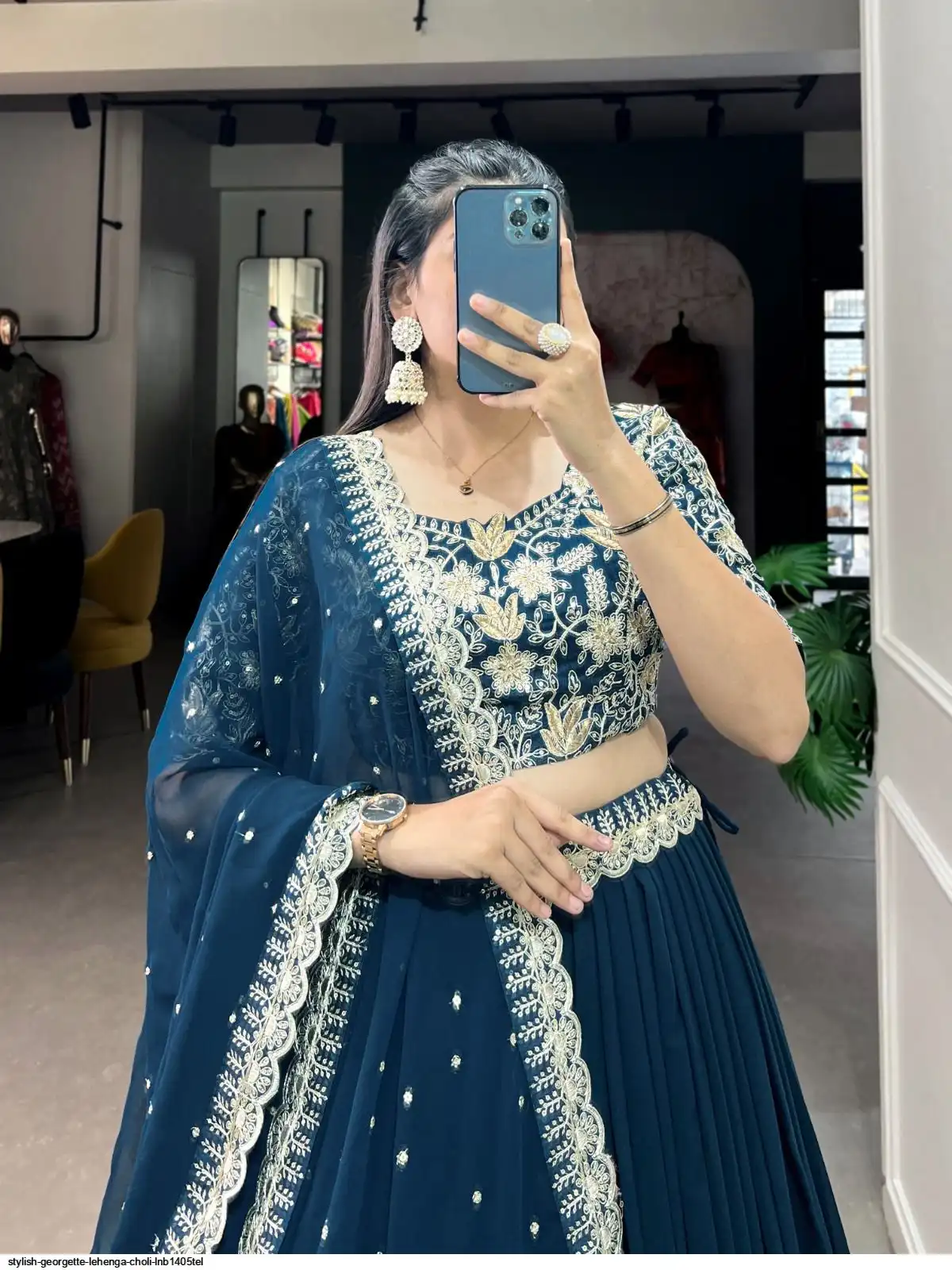 Elevate Your Ethnic Wardrobe with a Gorgeous Georgette Lehenga Choli and an Intricately Embroidered Banglory Blouse
