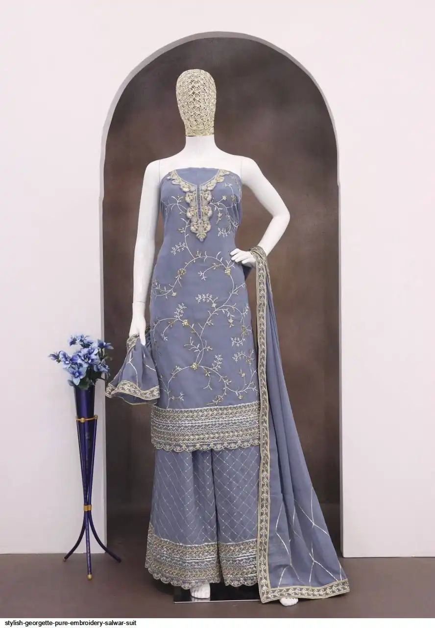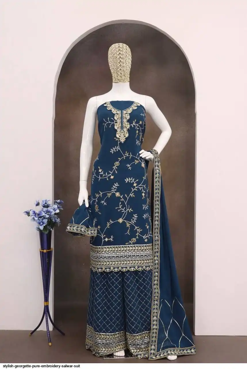 Plazo :- heavy Georgette With Emb.work +sequence + With Inner attached (Santoon)