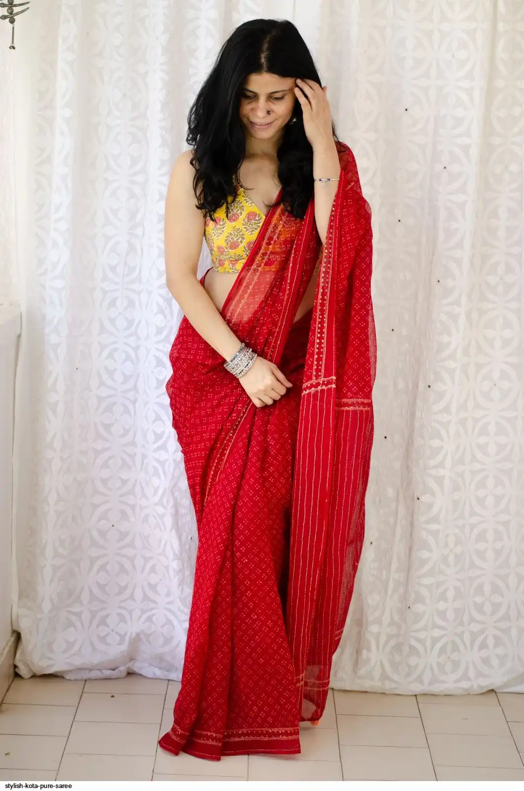 Fabric:- Kota Doriya With Digital Print Work And Running Designing Blouse