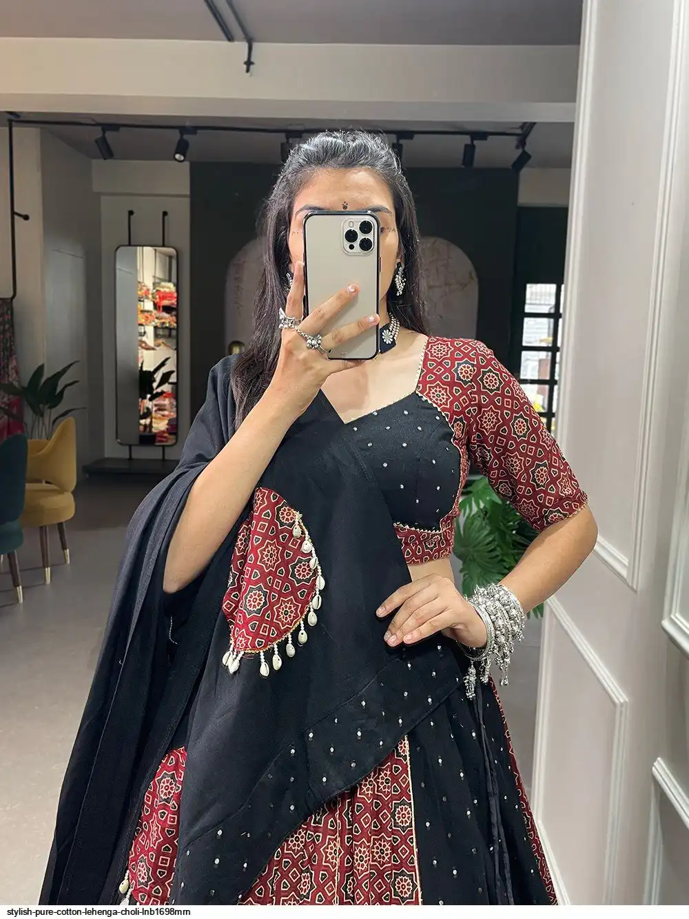 Presenting to you our latest masterpiece of Navratri collection. Dressup into this printed new maroon color and the mirror work chaniya choli to a create your garba look more significant
