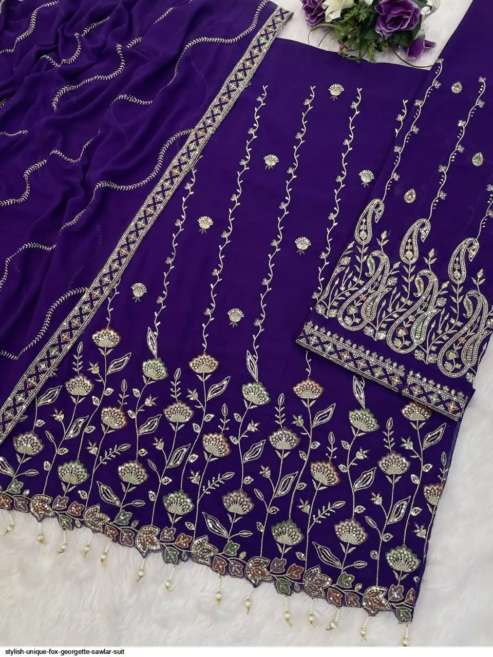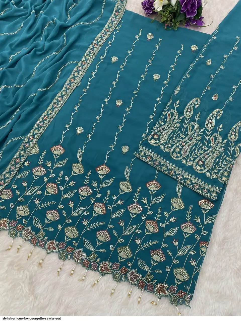 STYLISH UNIQUE FOX GEORGETTE SAWLAR SUIT