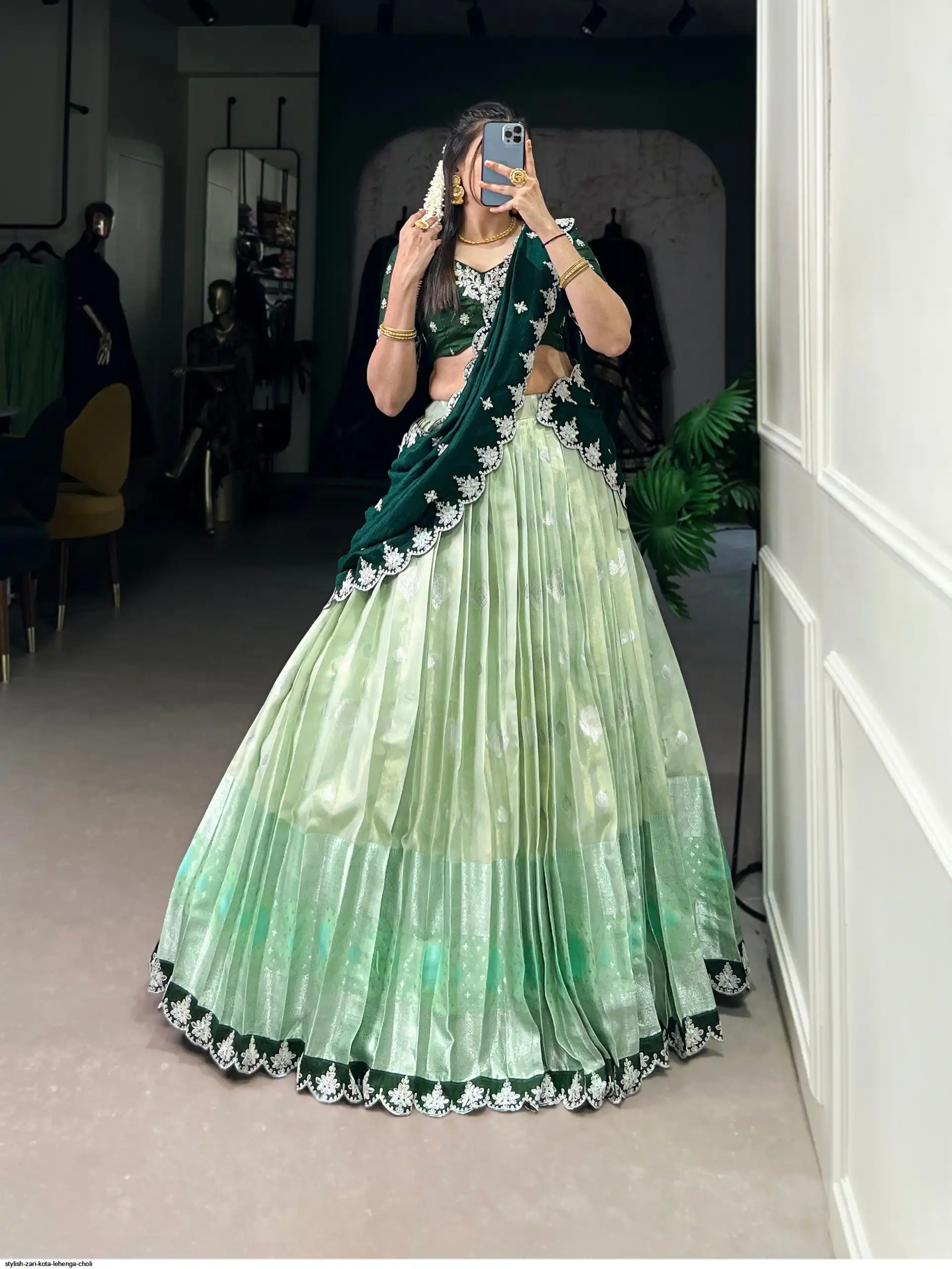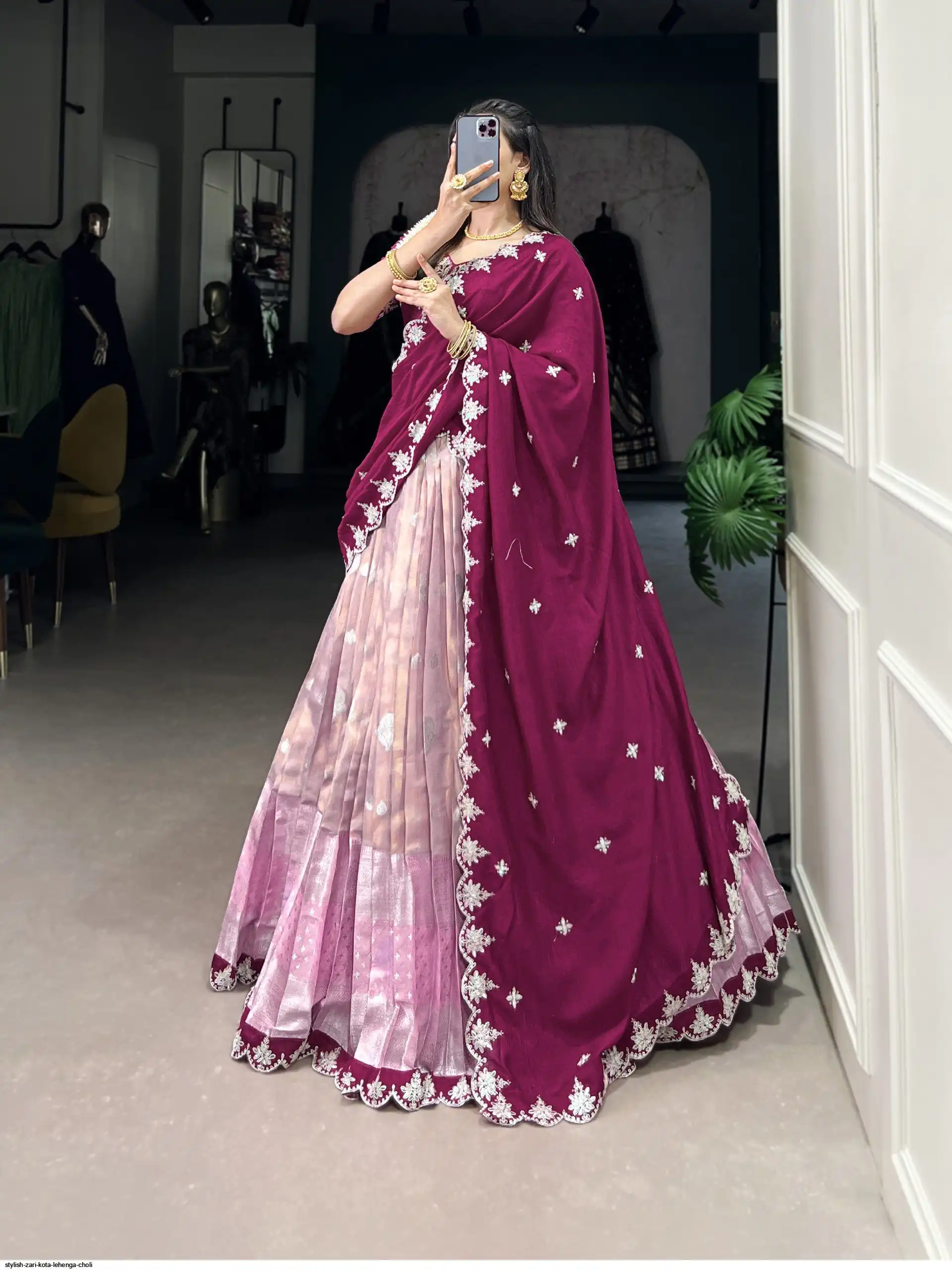 Lehenga Work : Zari Weaving Work With Sequins and Thread Embroidery Scallop Lace Border