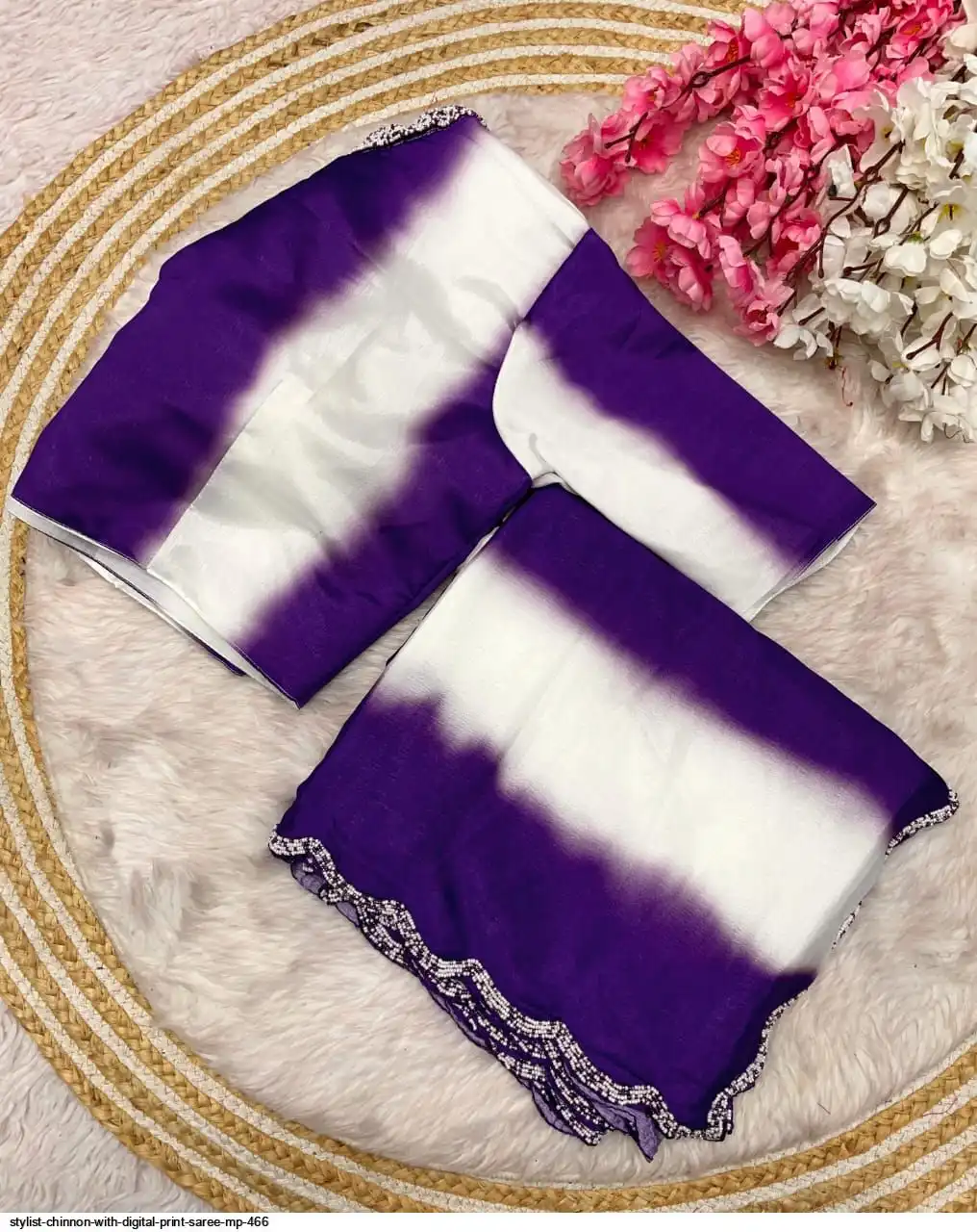 Blouse : Chinon digital print With khatli Work ( Sitch blouse)