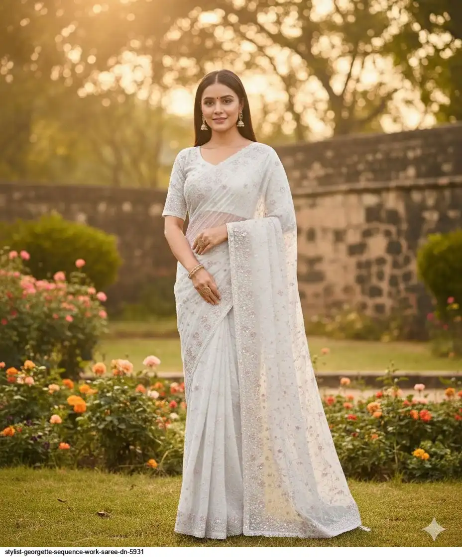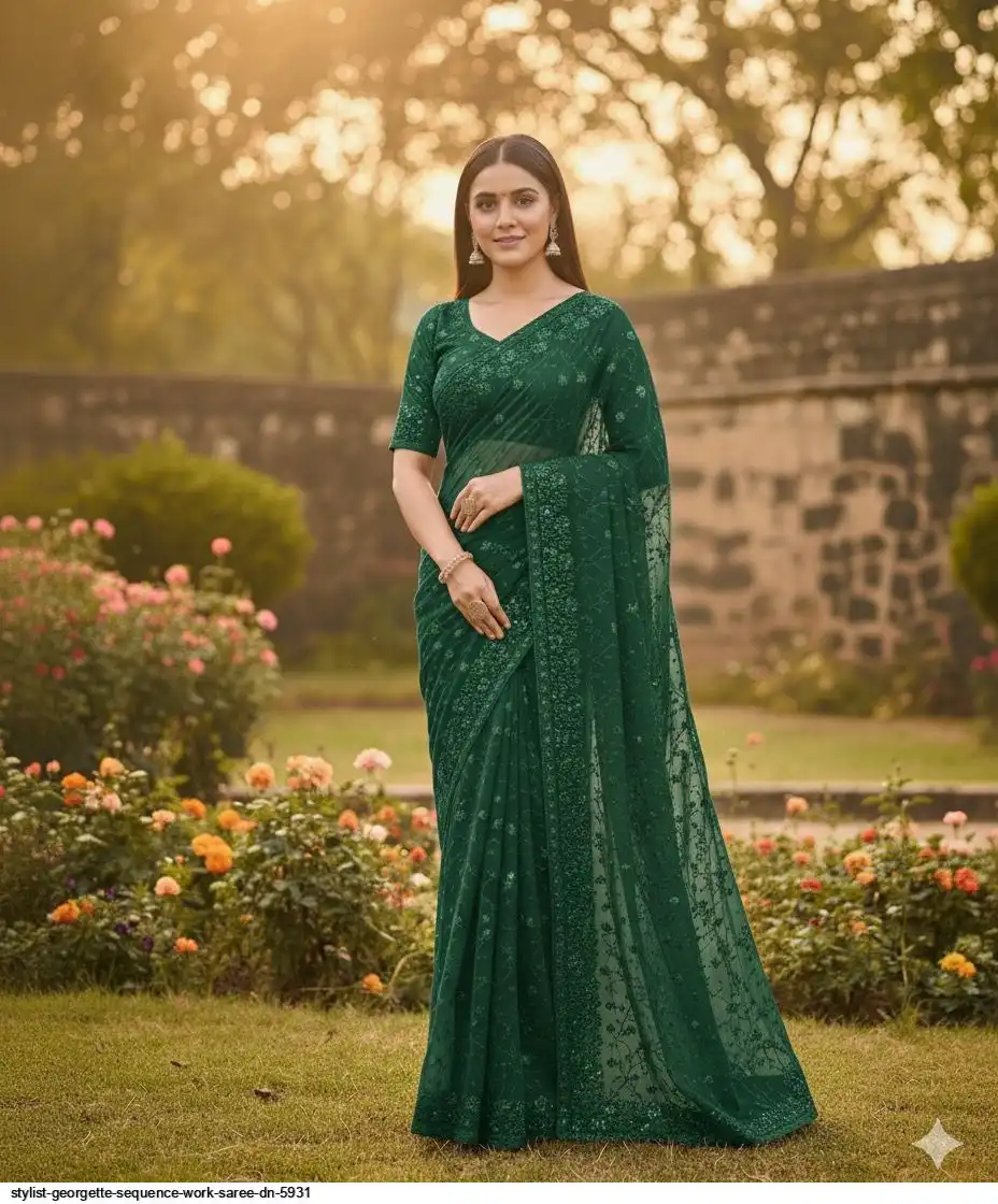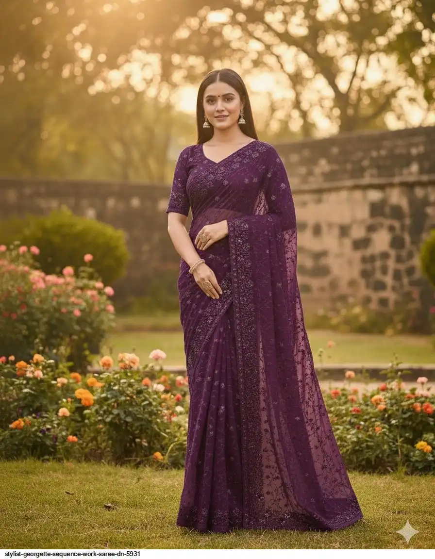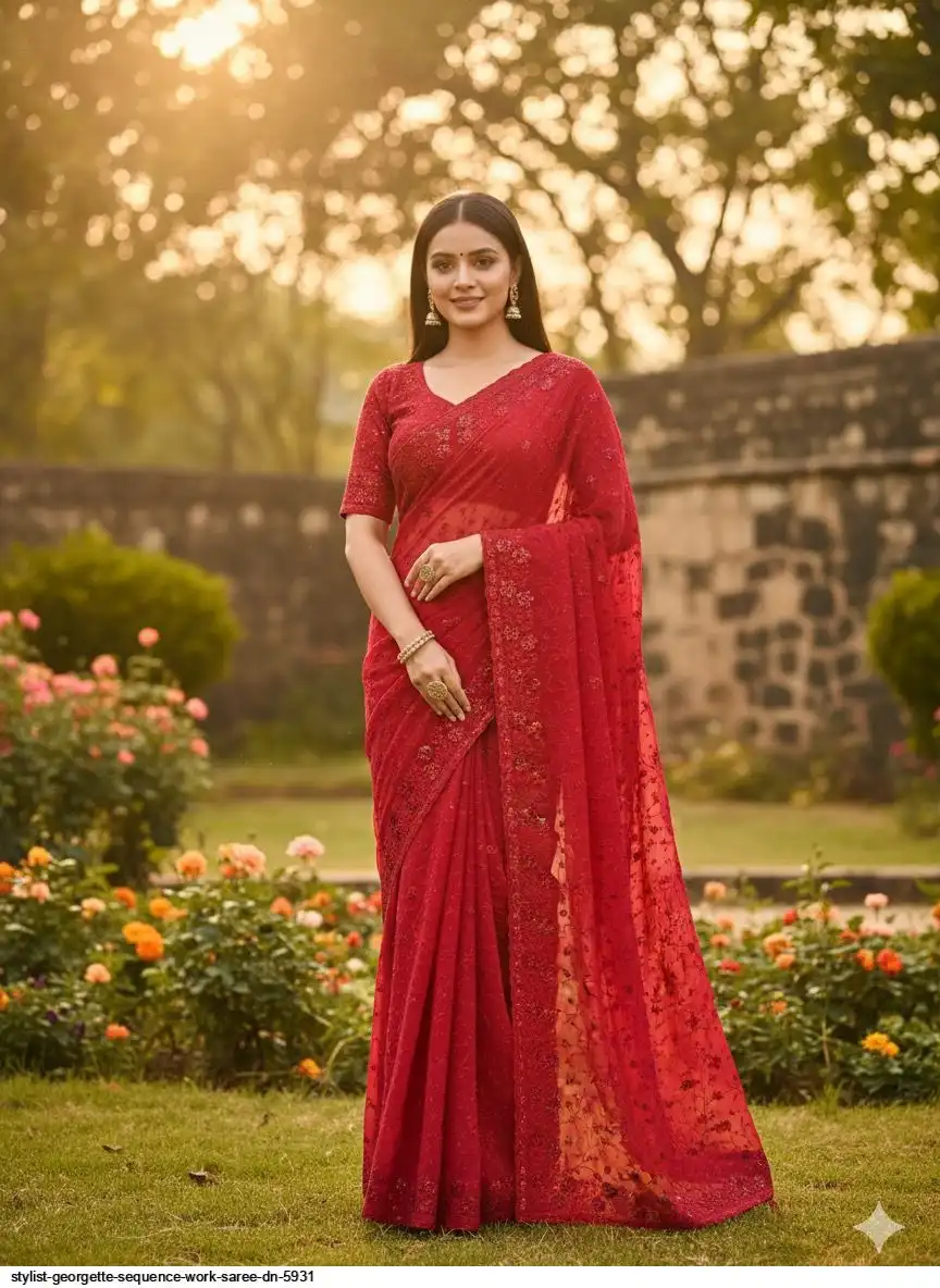 Work :- Full Heavy Thread & Sequnce Work With Cut Work Border