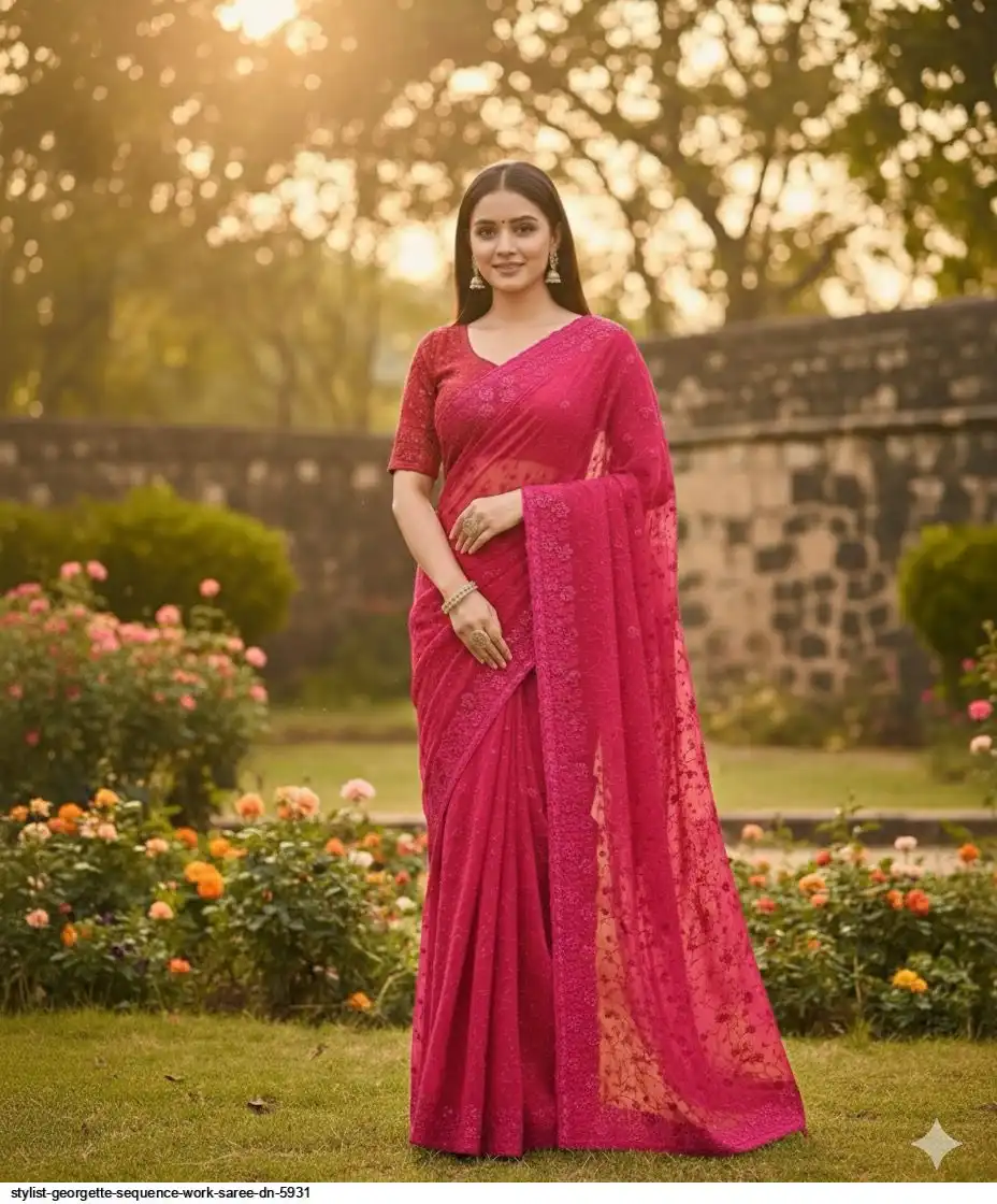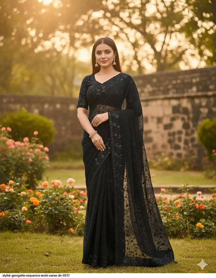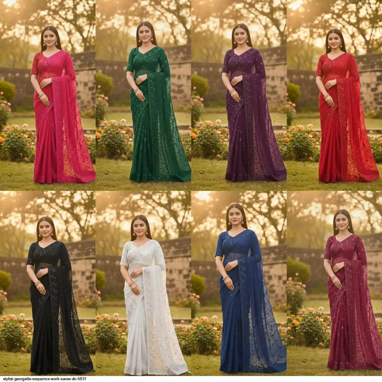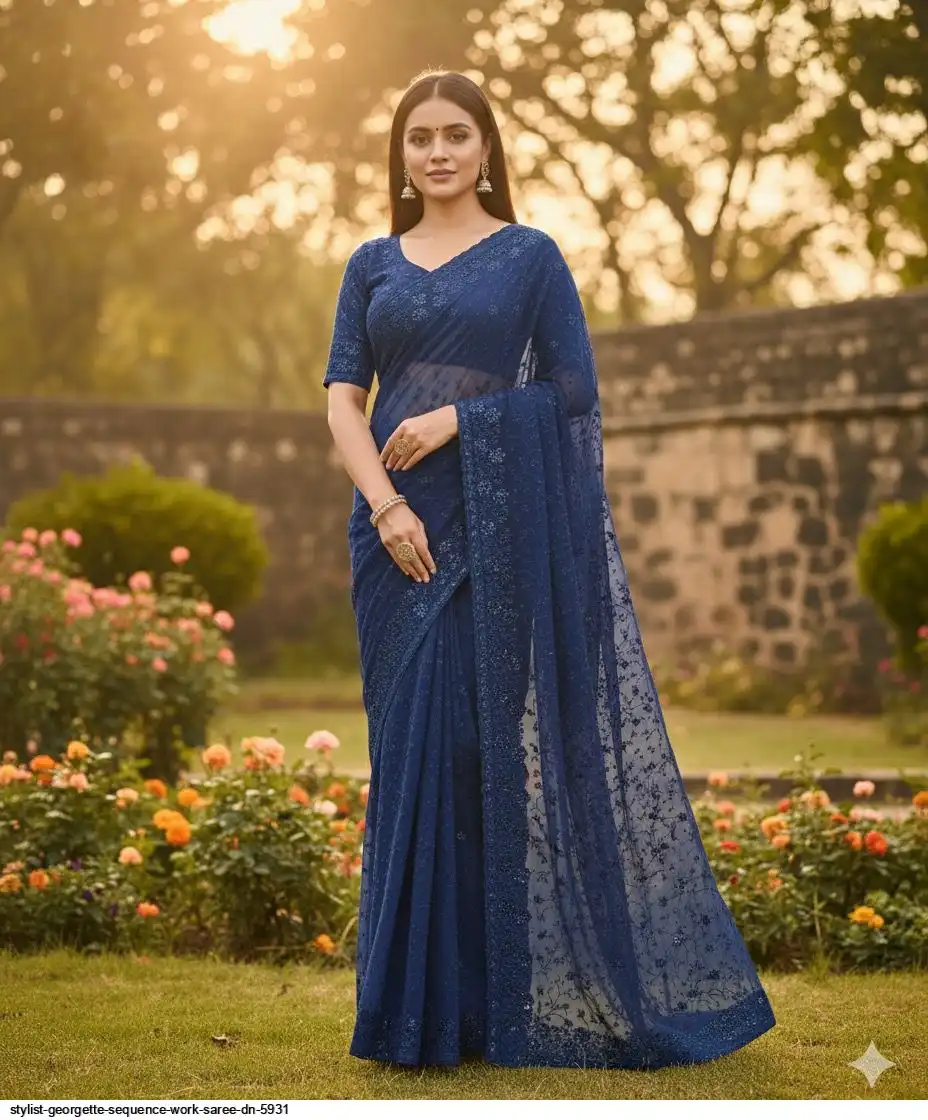 Work :- Full Heavy Thread & Sequnce Work With Cut Work Border