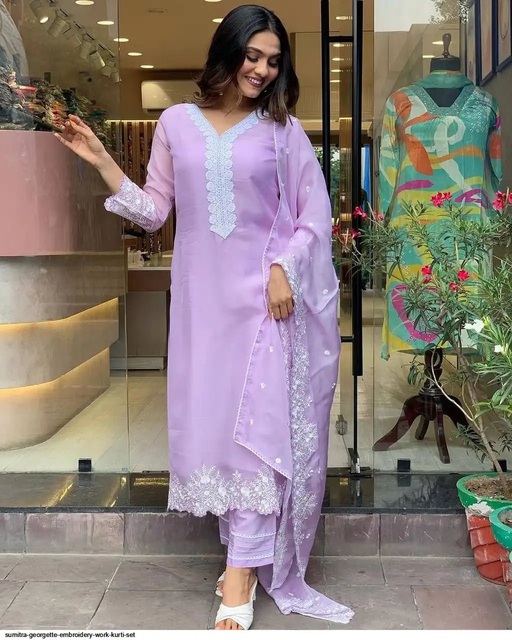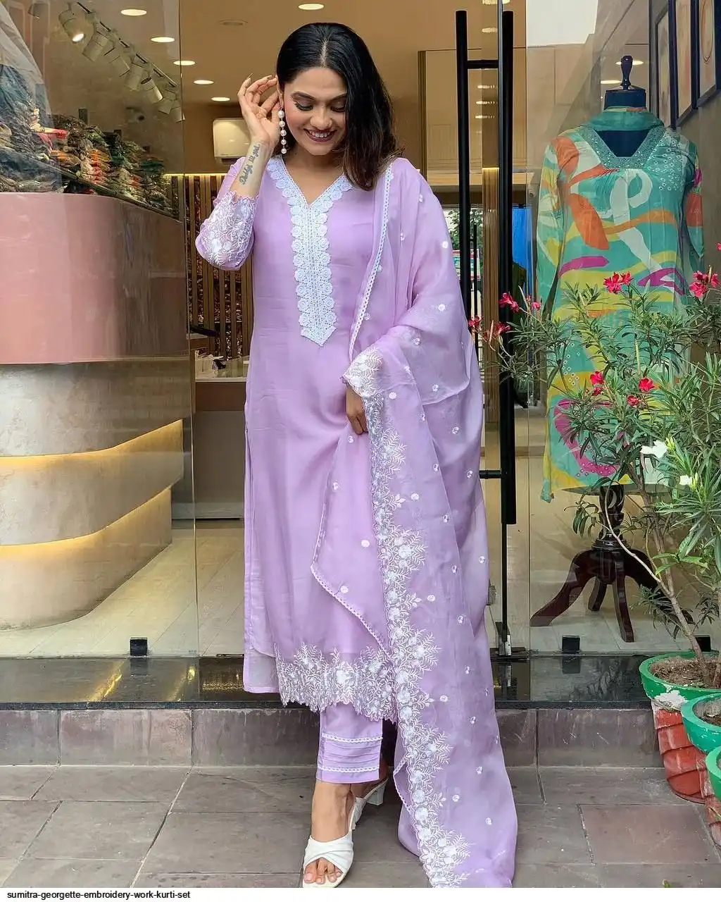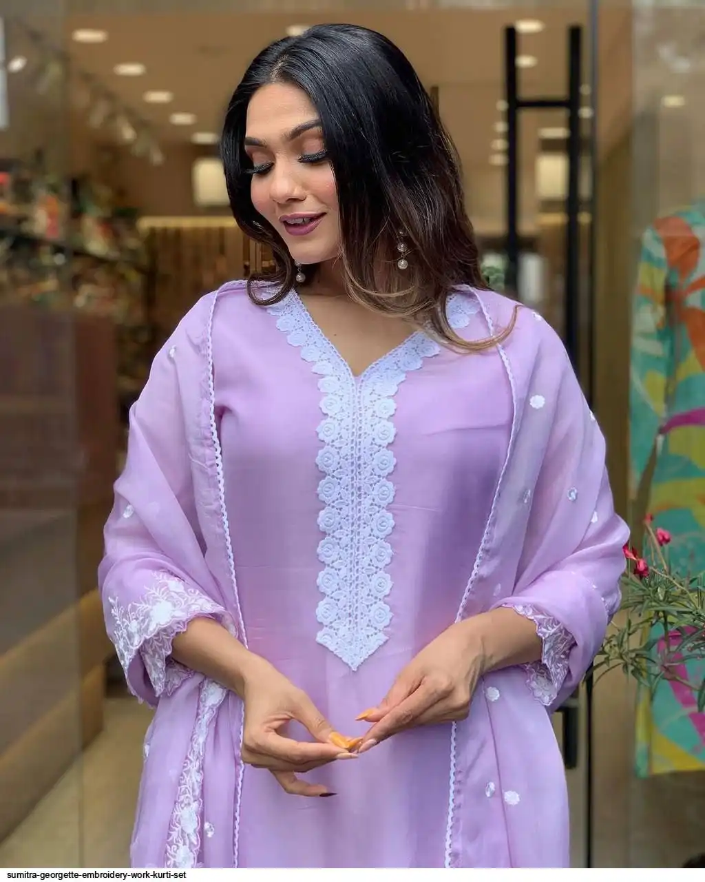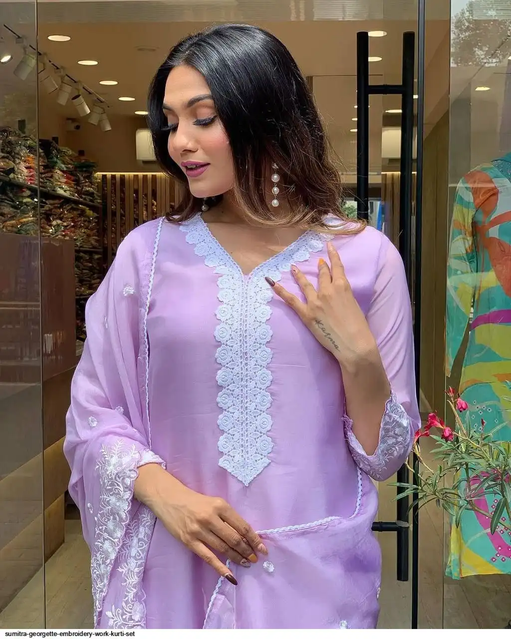 Women Embroidered PURE RUSSIAN SILK kurta set