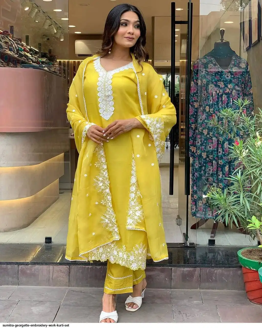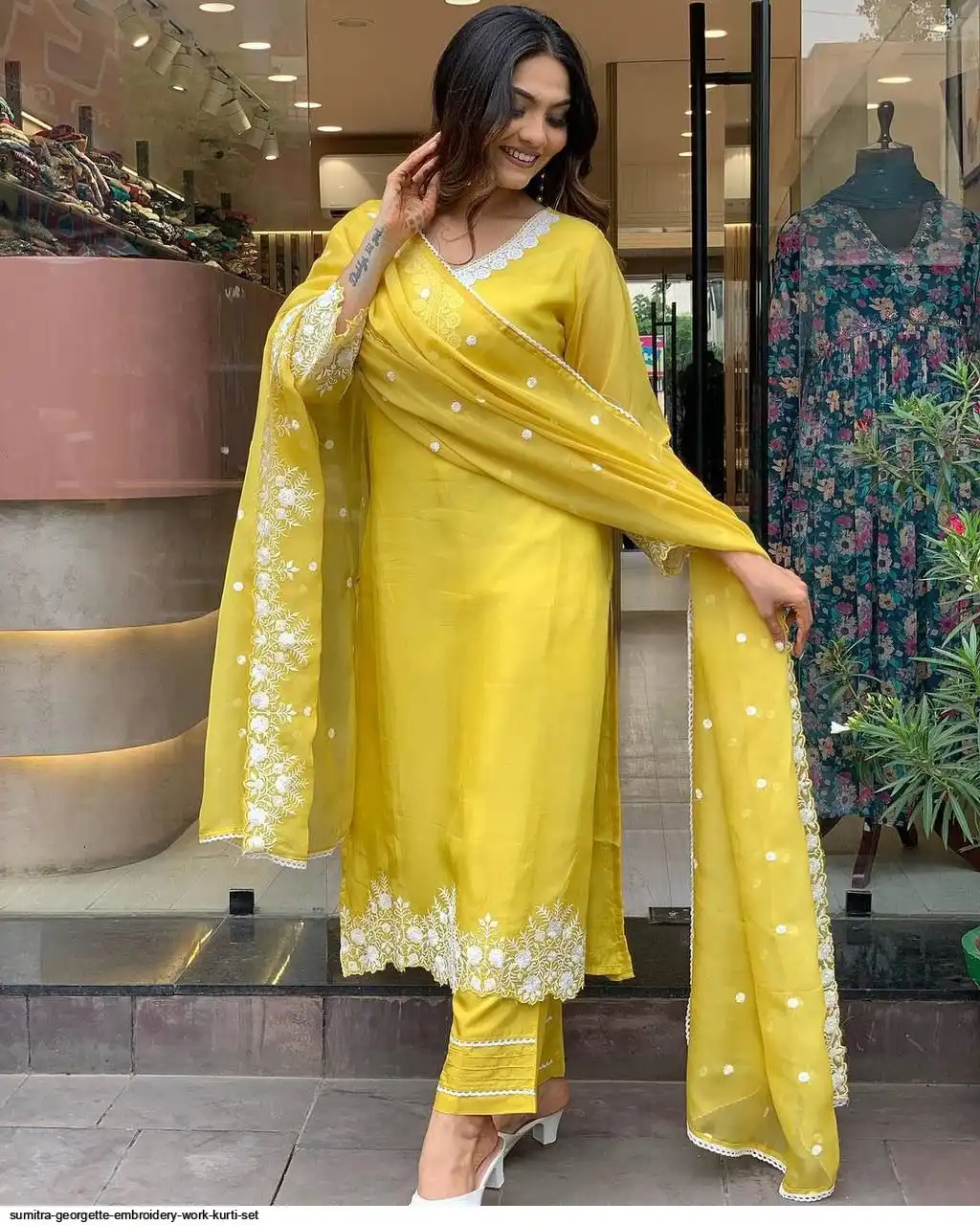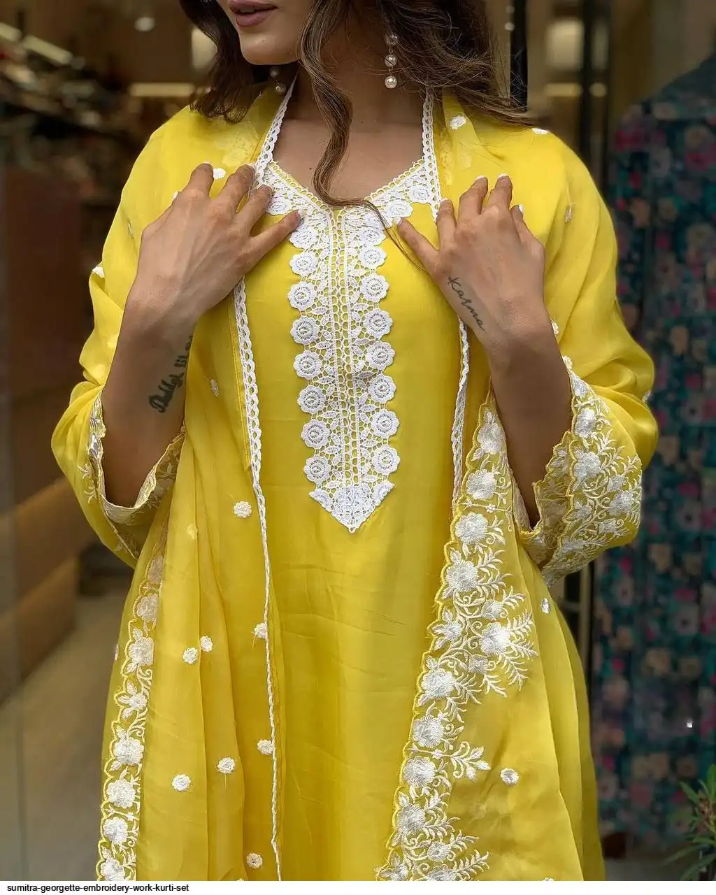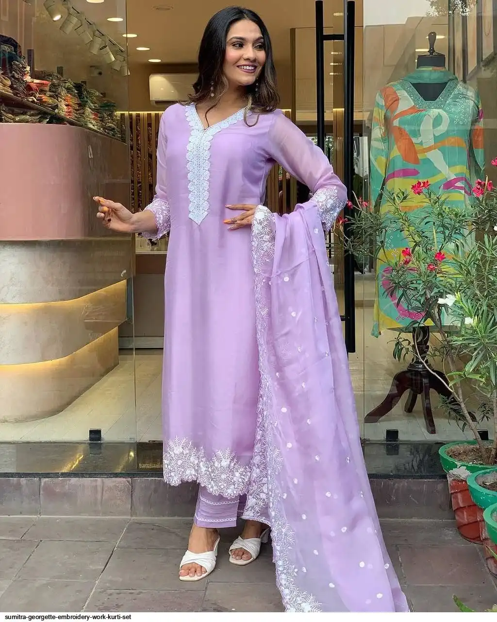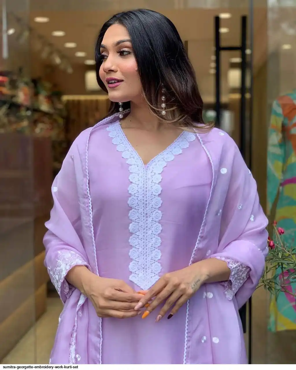 Women Embroidered PURE RUSSIAN SILK kurta set