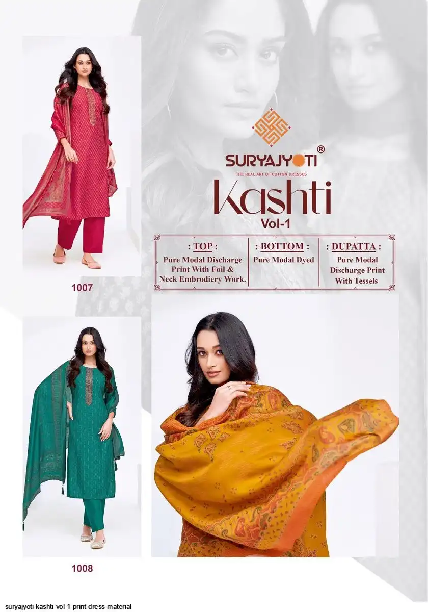 Top:- Pure Modal Discharge Print With Foil Neck Tie Embroidery Work | Cut:- 2.50 Mtrs