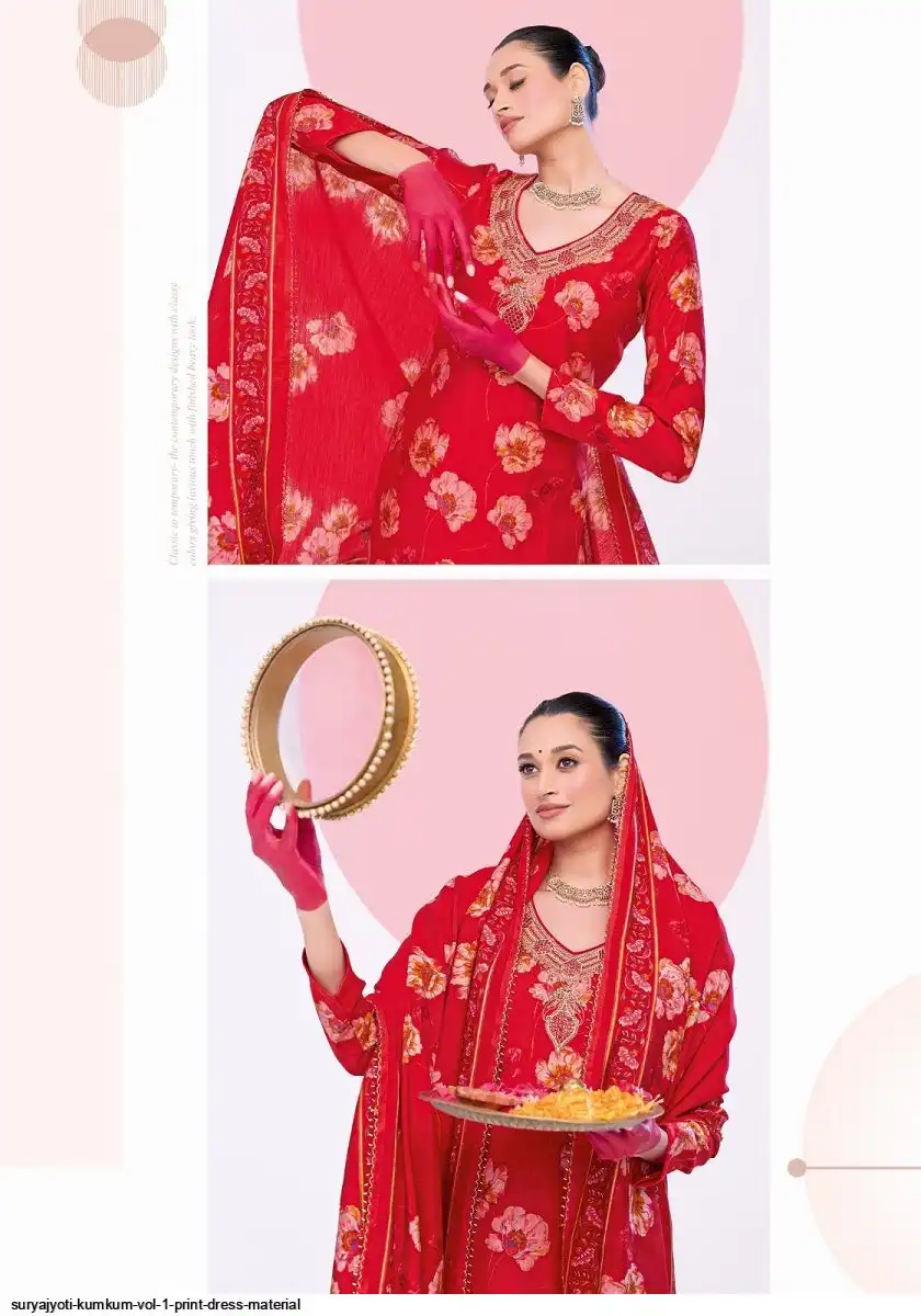 Top:- Pure Modal Discharge Print With Foil Neck Embroidery Work With Border Lace Work | Cut:- 2.50 Mtrs