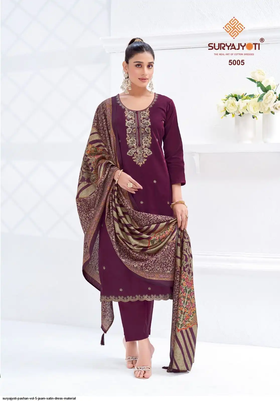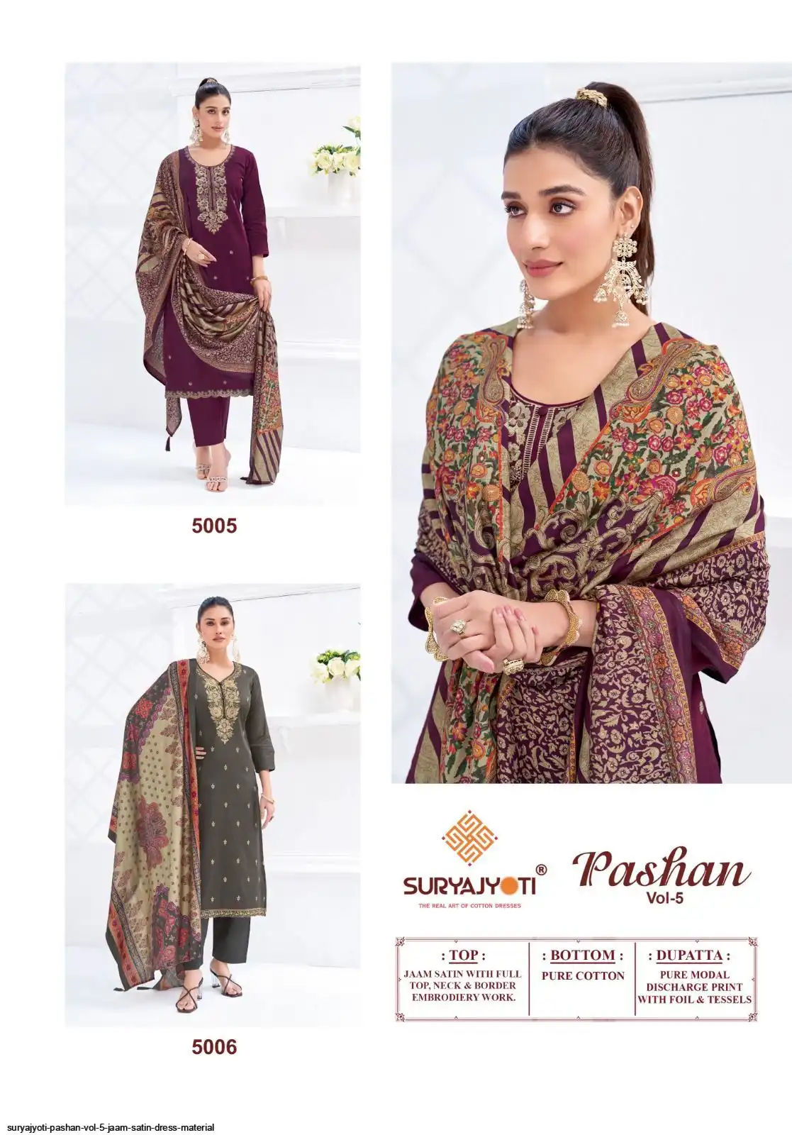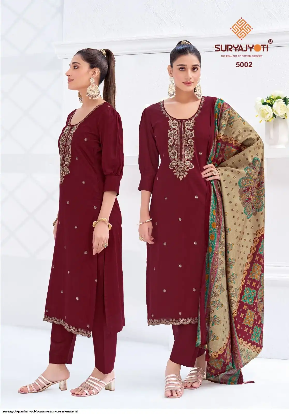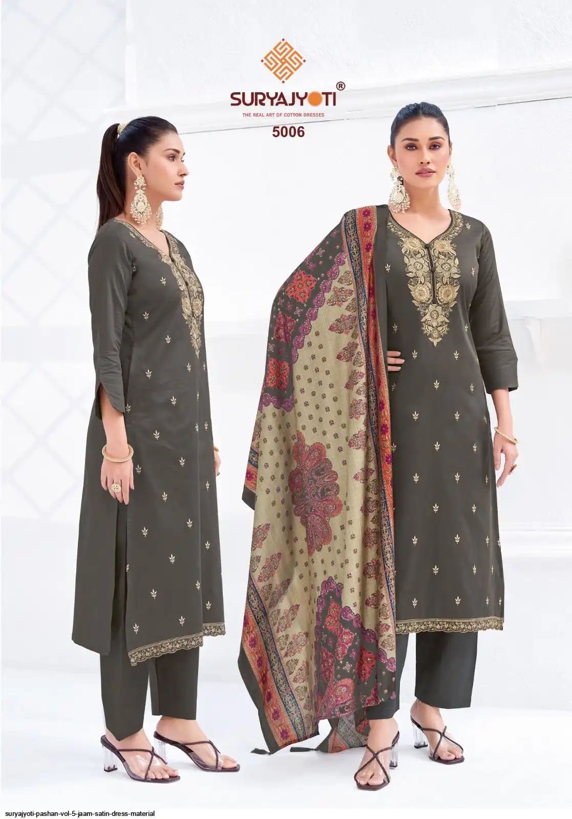 TOP:- JAAM SATIN DYED WITH FULL TOP, NECK & BORDER EMBRODIERY WORK