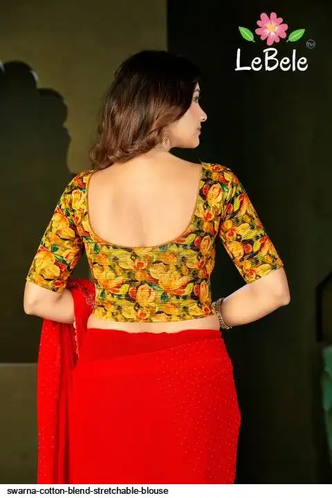 A vivid celebration of color and craftsmanship, this ready-to-wear blouse features luxurious floral prints inspired by festive artistry. The deep U-back cut, half sleeves, and perfectly contoured fit bring together tradition and trend in one statement piece.