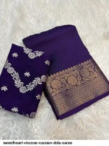 Pure viscose Russian Dola saree with weaving pallu and jacquard pallu