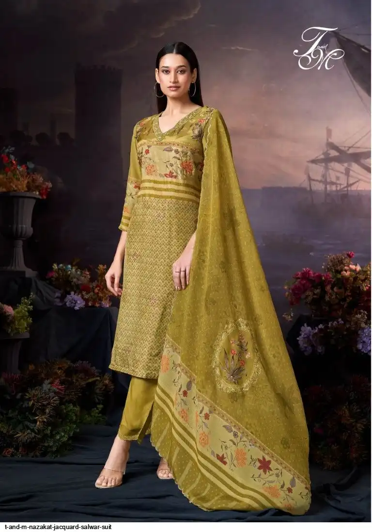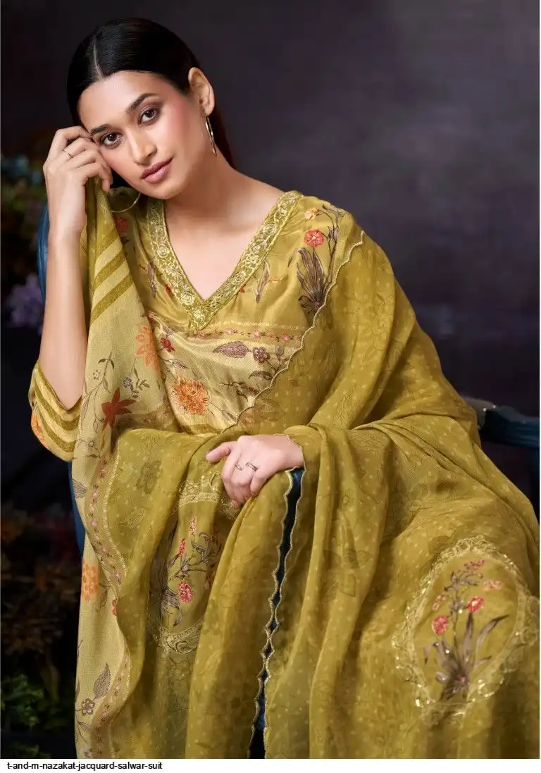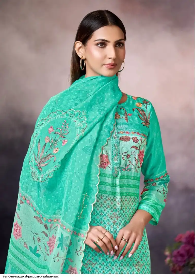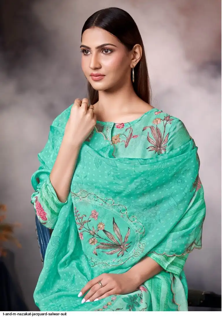 PREMIUM PURE PASHMINA JAQUARD WITH HANDWORK AND EXTRA SLEEVE AND EXTRA