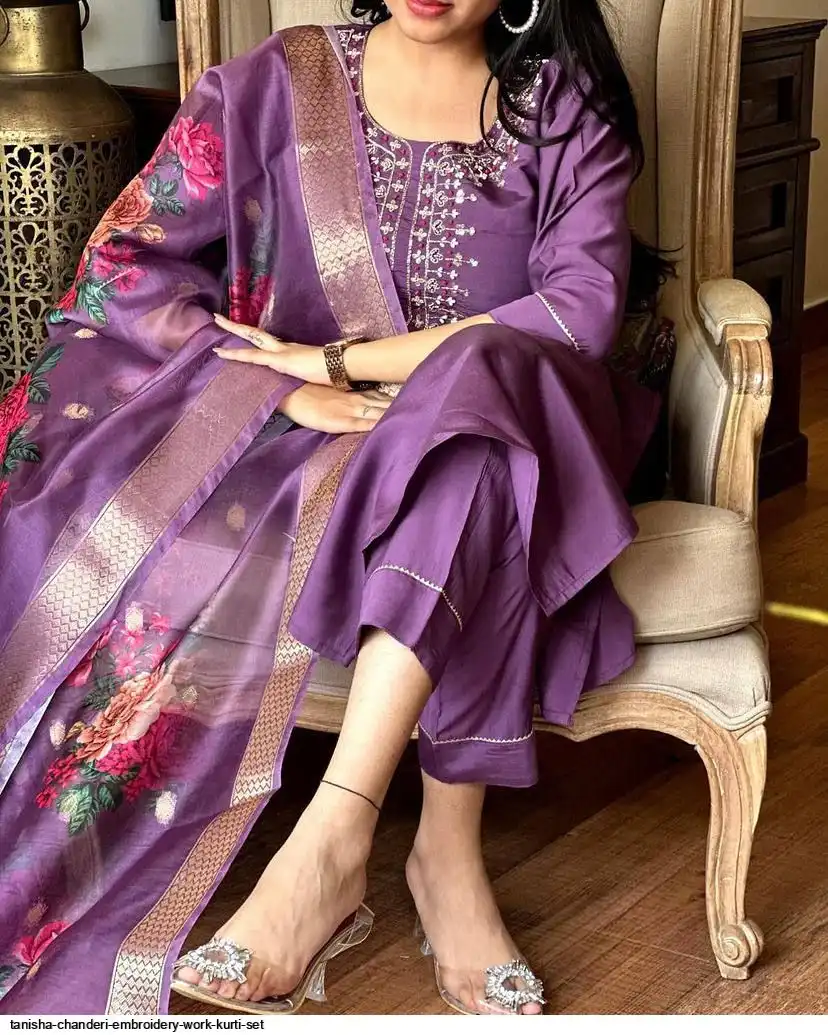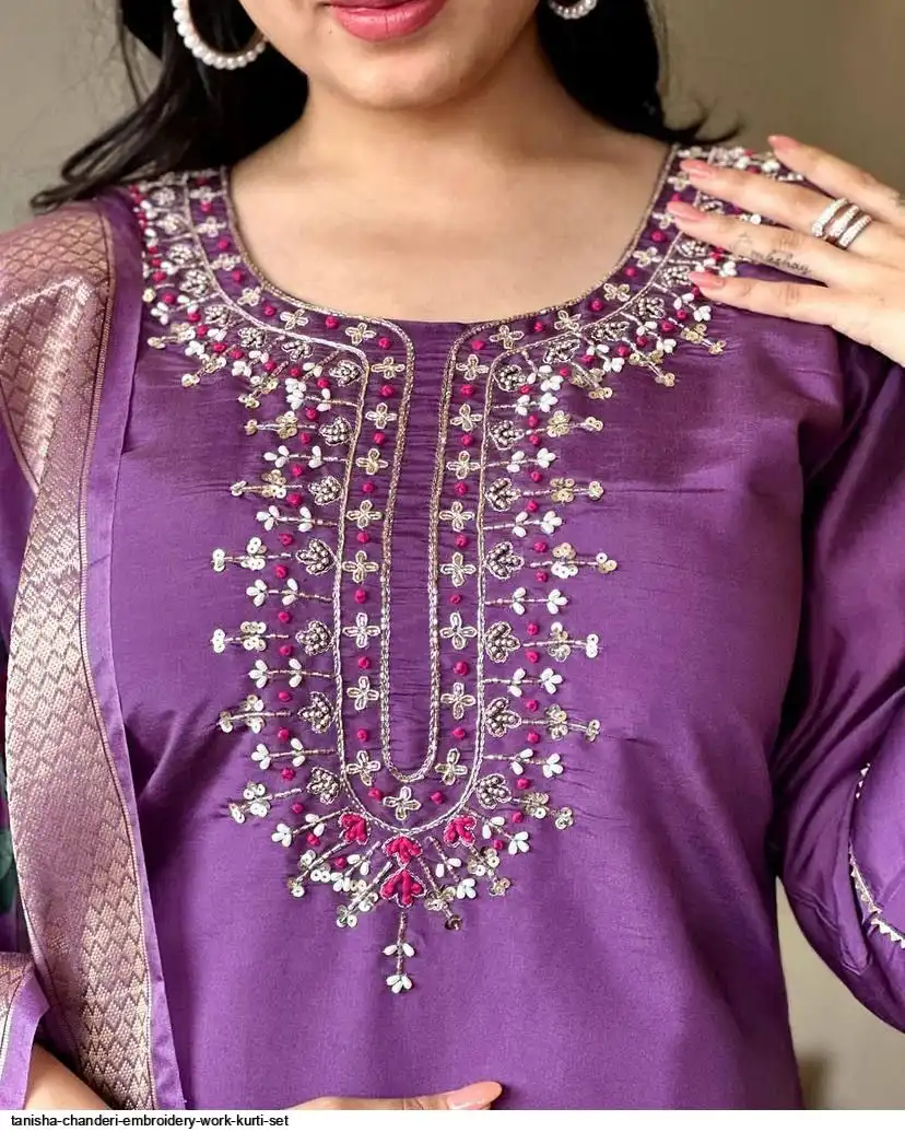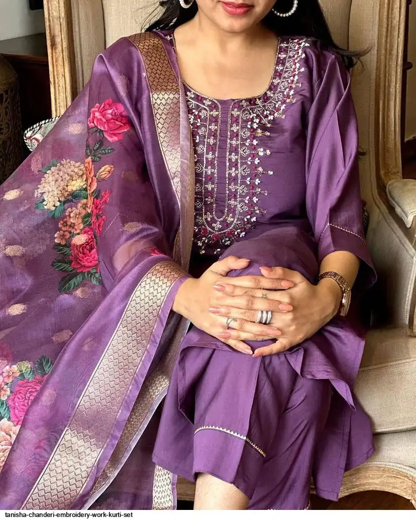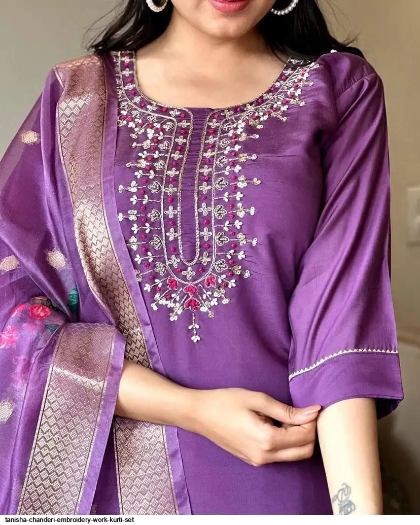 Women Embroidered Chanderi SILK KURTA SET
