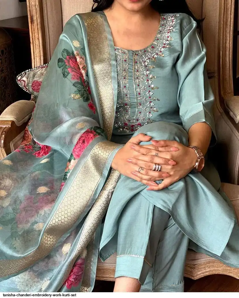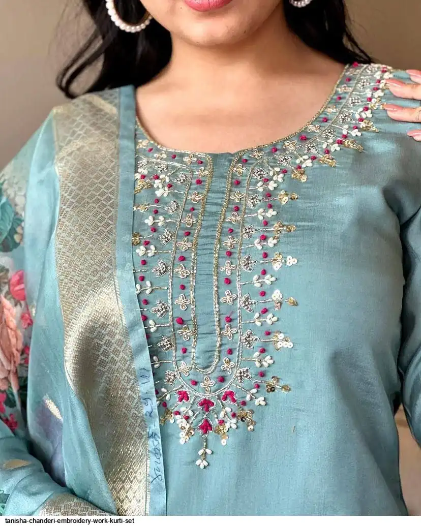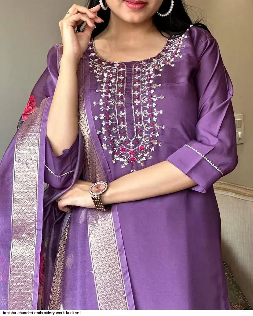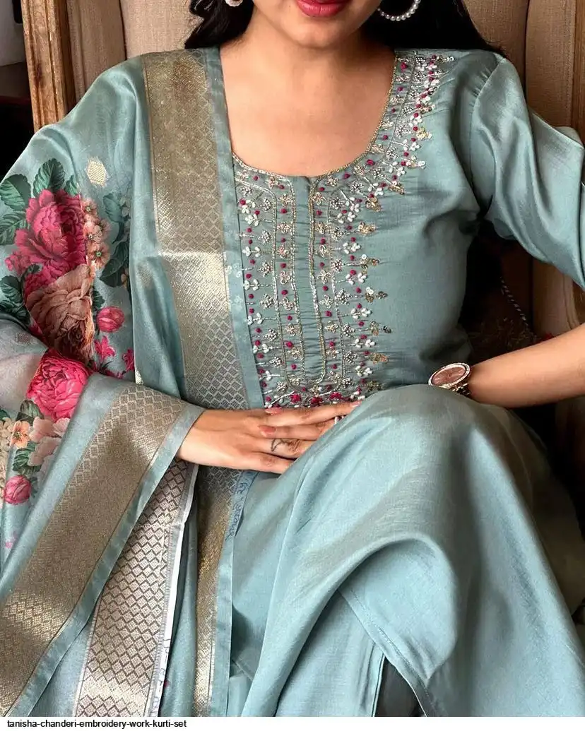 Women Embroidered Chanderi SILK KURTA SET