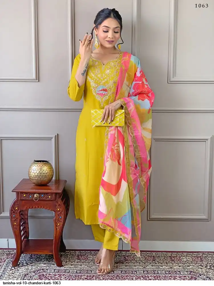 TANISHA VOL 10 CHANDERI KURTI 1063