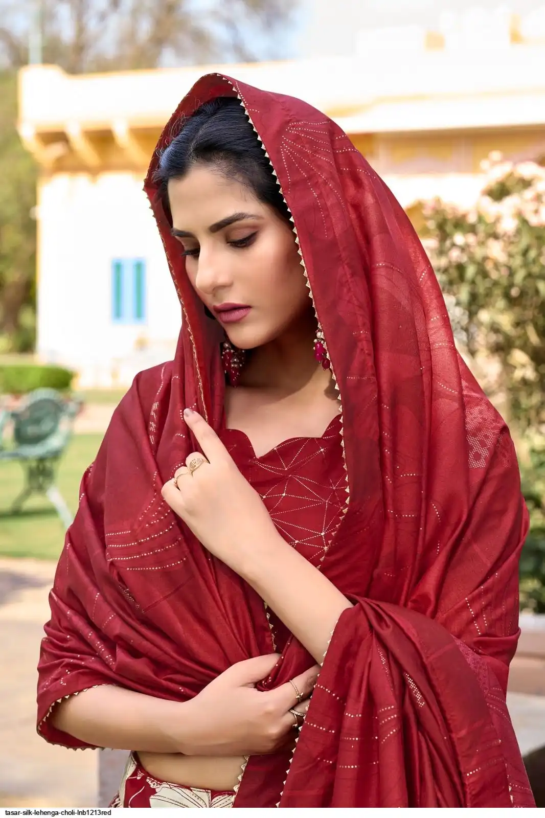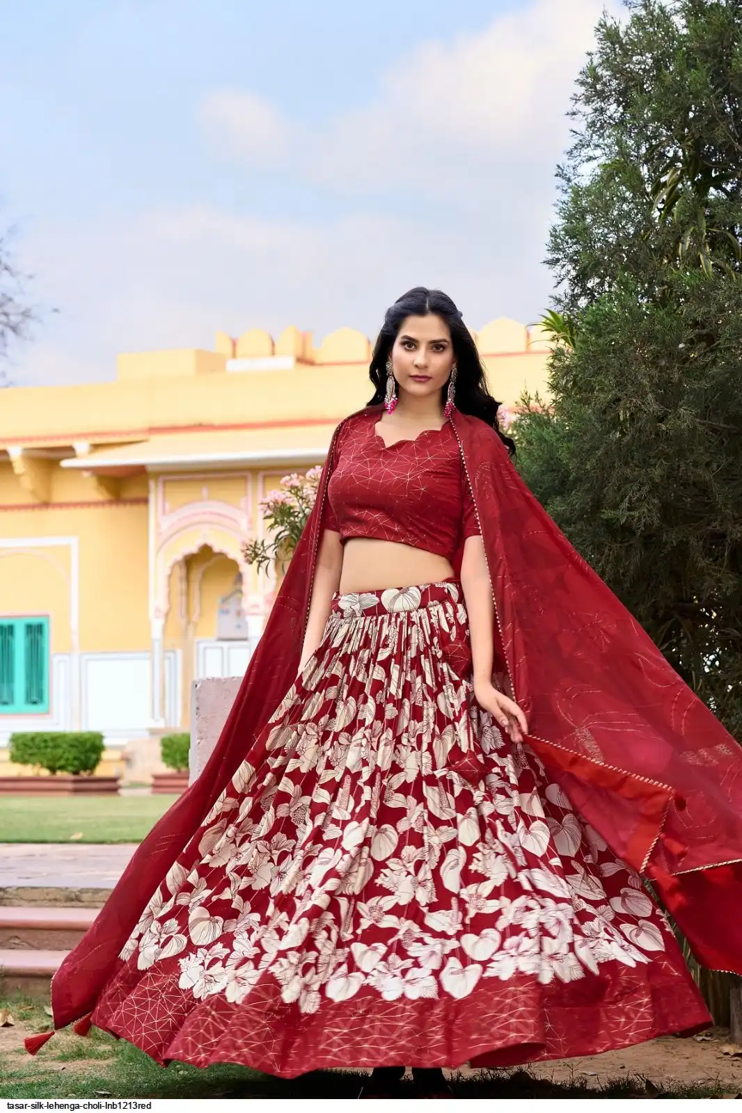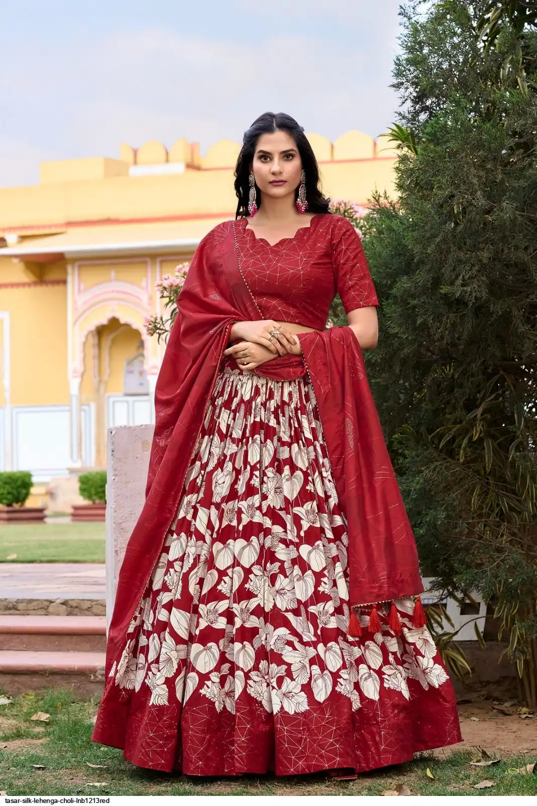 Transform your ethnic look with our Tussar Silk Printed Lehenga Choli - The beautiful prints on silk fabric make this ensemble a perfect choice for any festive occasion