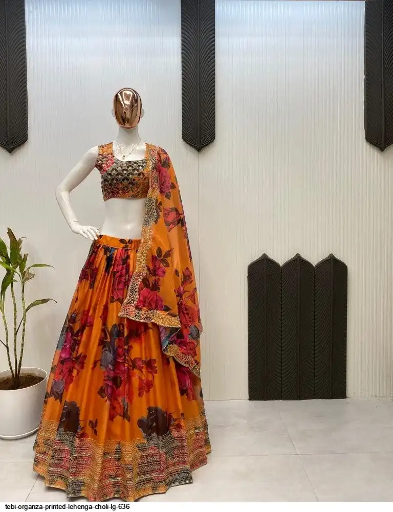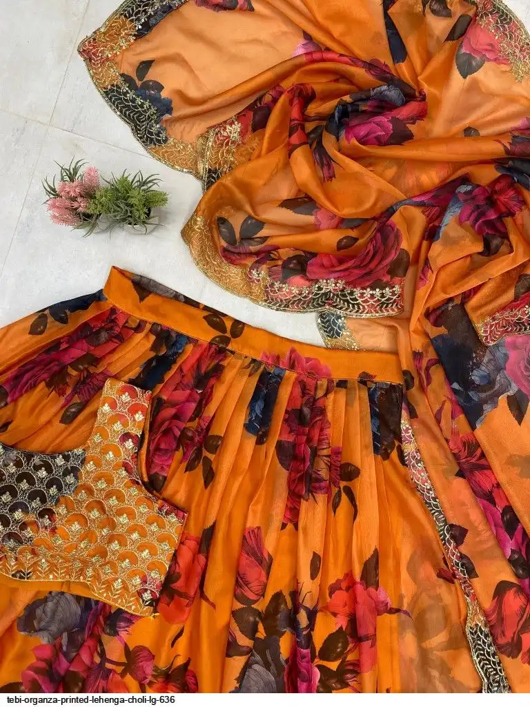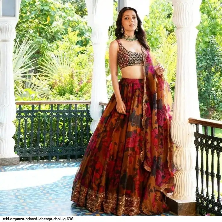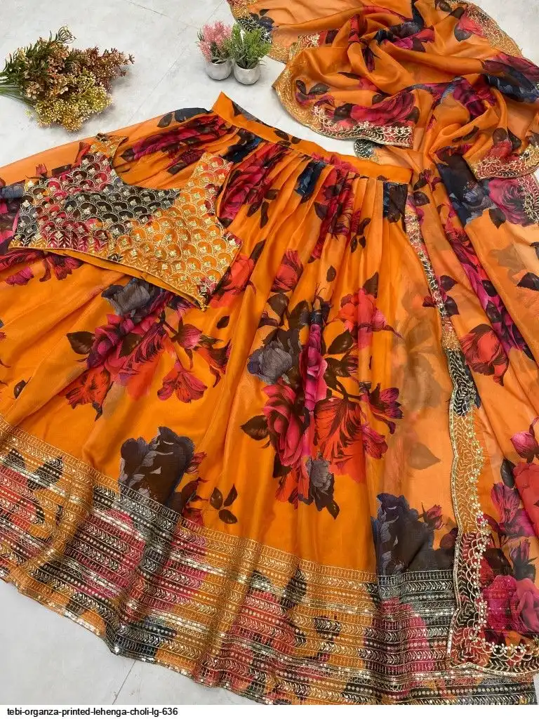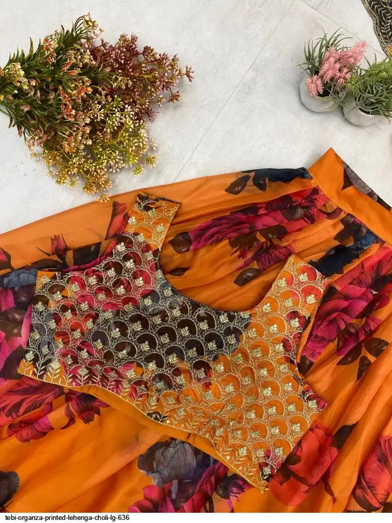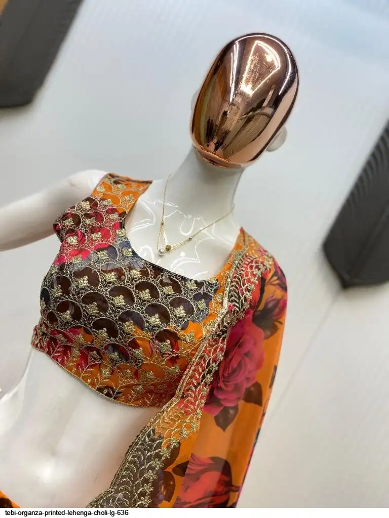 PRINTED TEBI ORGANZA WITH SEQUENCE EMBROIDERY WORK ON BORDER(2.2 mtr)