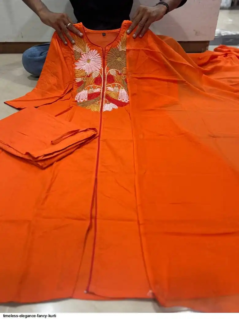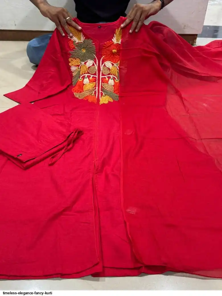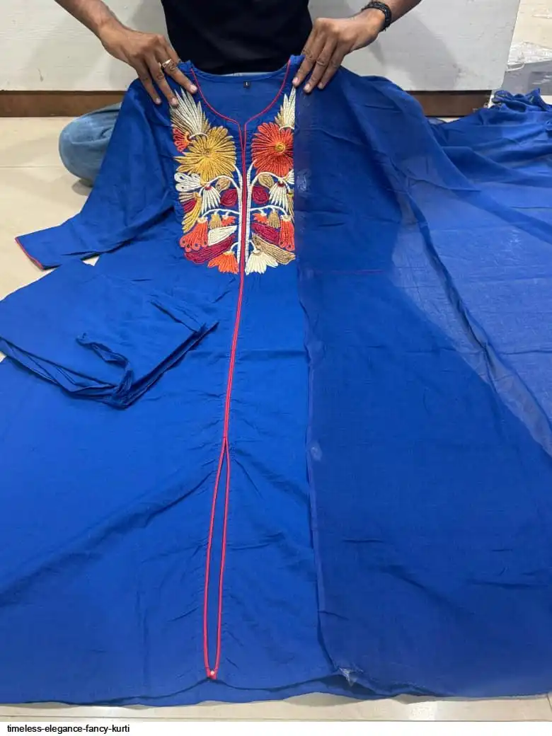 Step into timeless elegance with this exquisite designed to make you stand out at any festive or celebratory occasion. Crafted from luxurious silk, the aline kurti set with dupatta features a graceful flare that flows beautifully, creating a regal and sophisticated look silhouette. The intricate detailing on the yoke adds a touch of traditional charm, while the soft cotton 60 60 fabric ensures all-day comfort