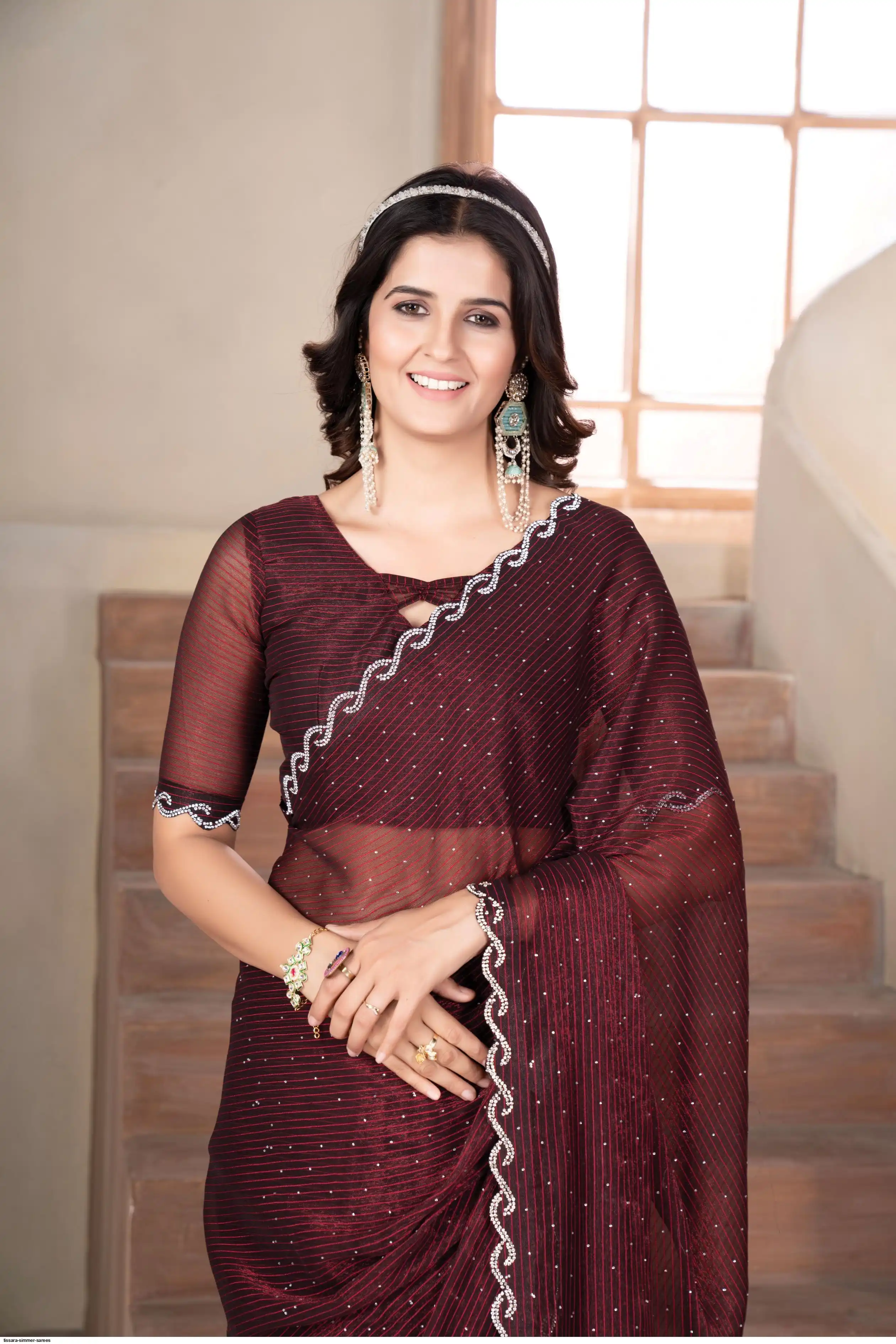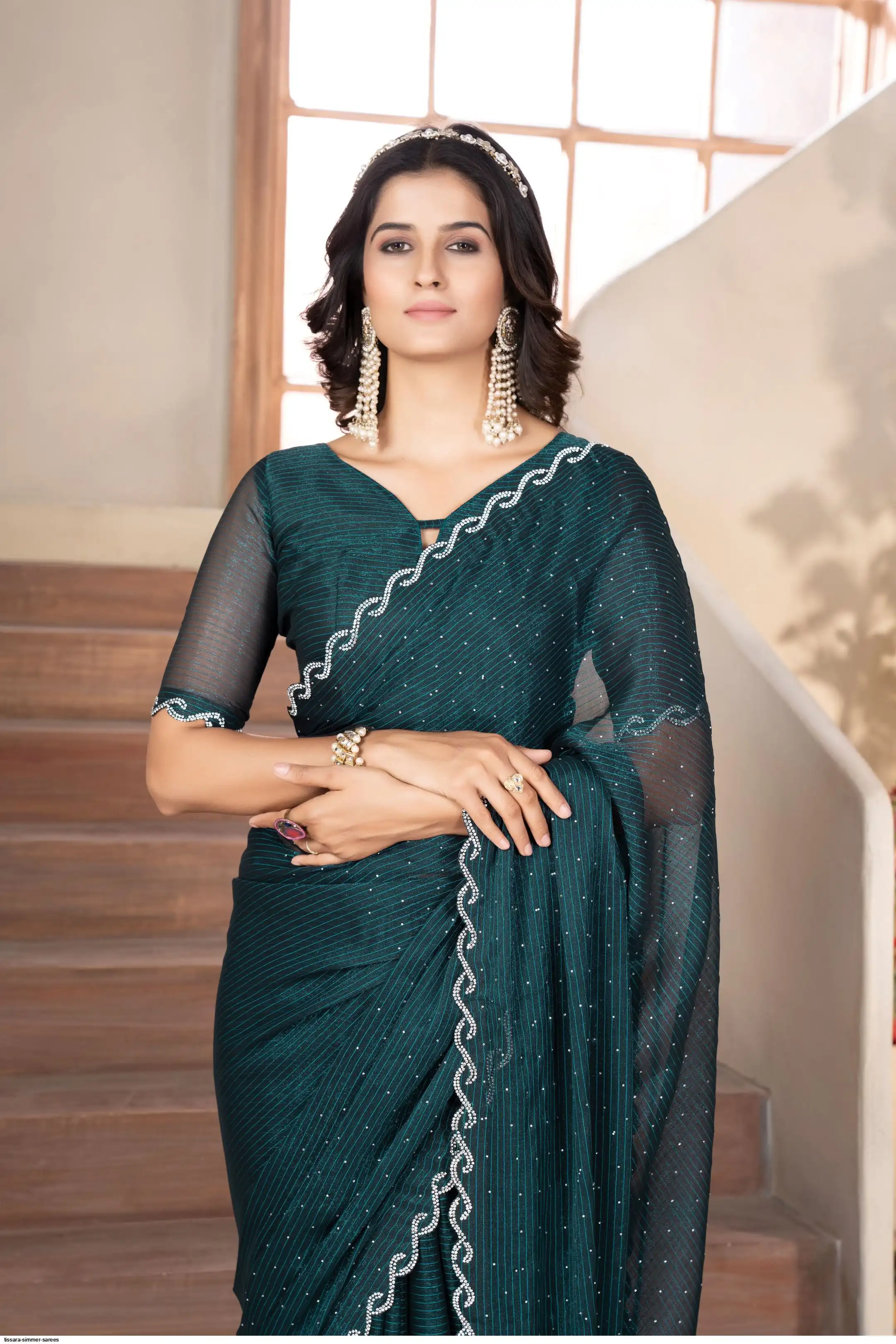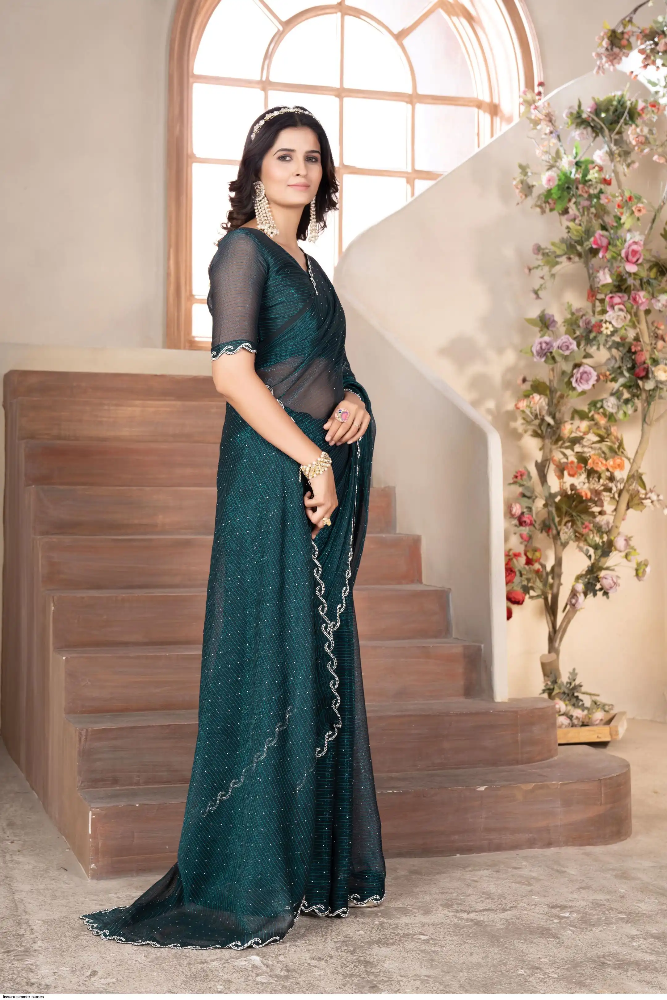 EMBLISHMENT- SWAROVSKI CUT WORK BORDER WITH STONE WORK ALLOVER