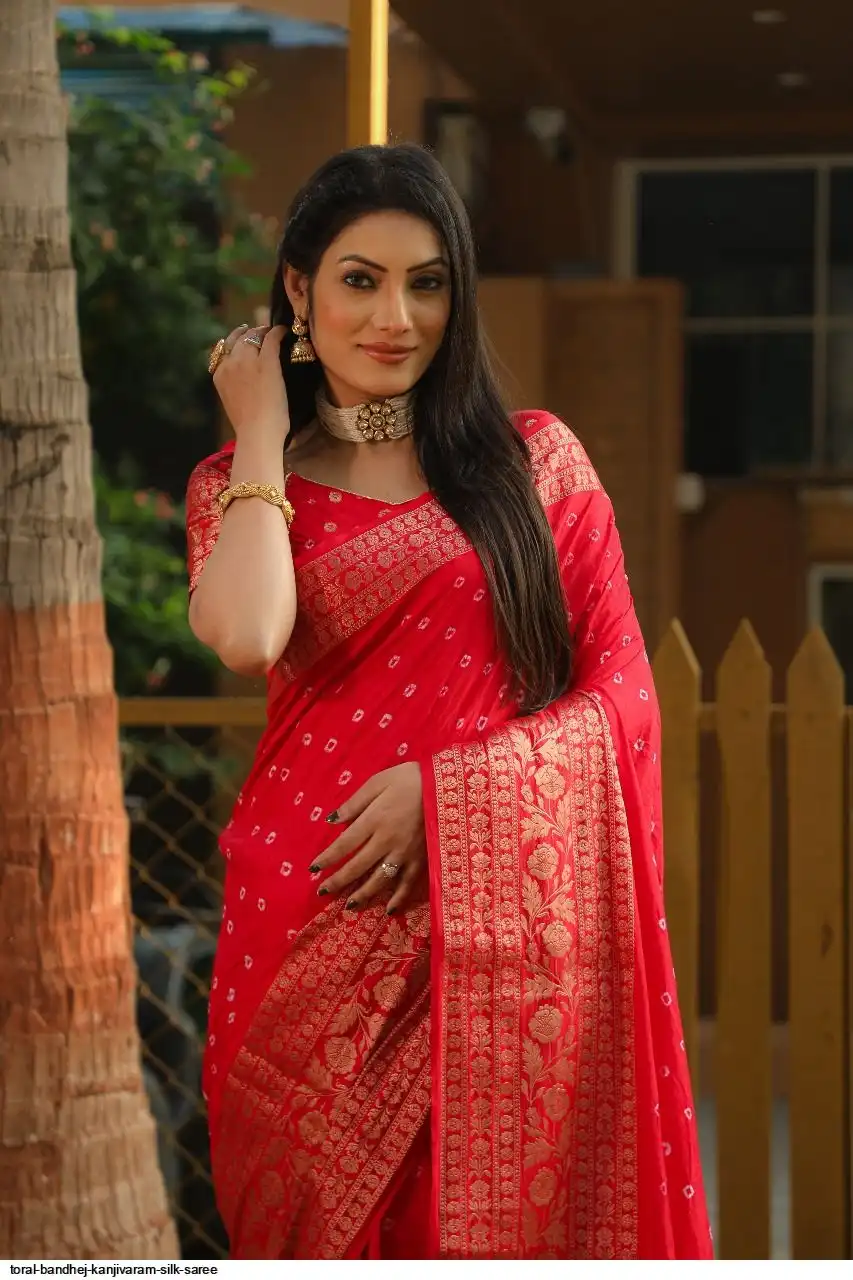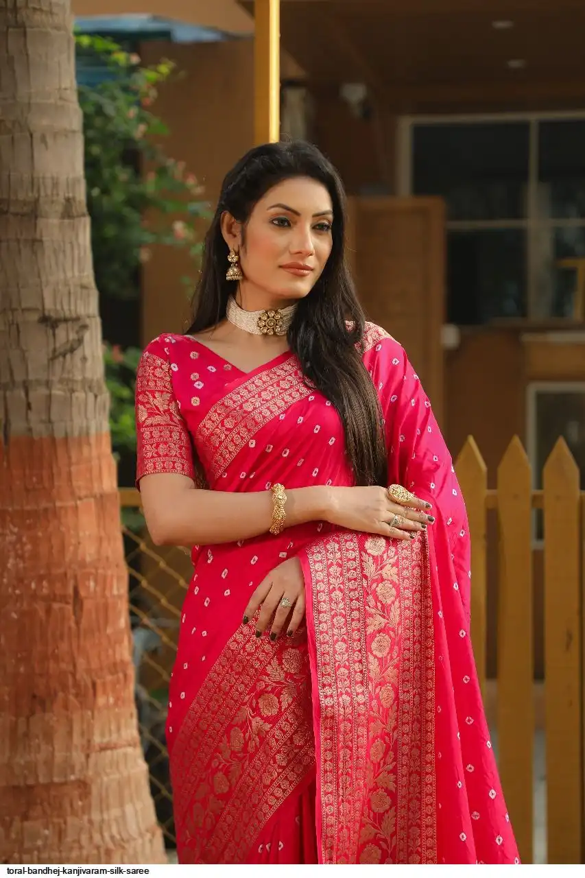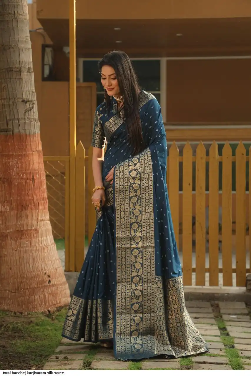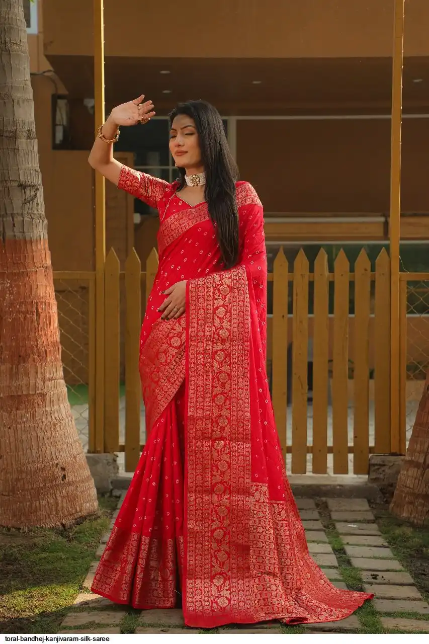 New premium and high quality , comfortable Bandhej Kanjivaram silk drapes that is super stylish and pretty *