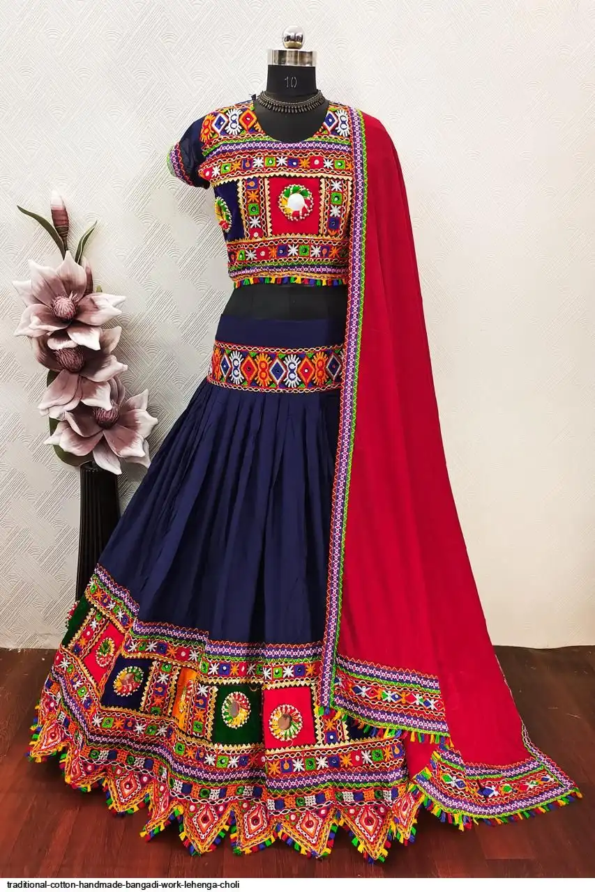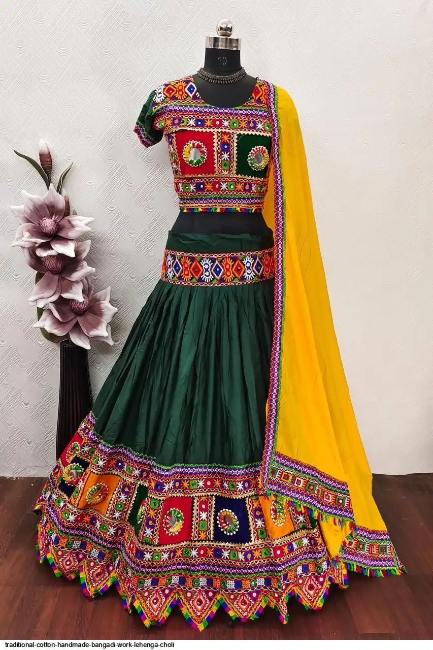 LEHENGA : Pure Heavy Rayon Cotton with Heavy work Border and Handmade Bangadi with Paper Mirror Work and Embroidery Patches..
