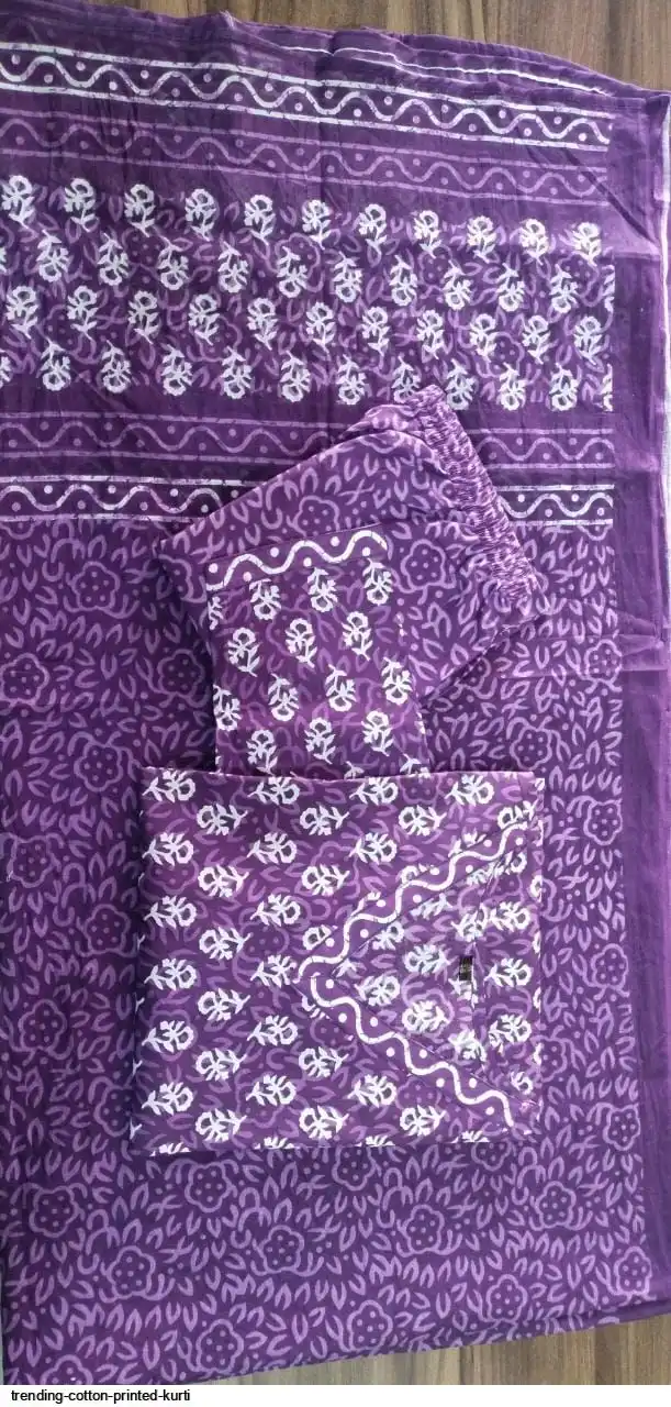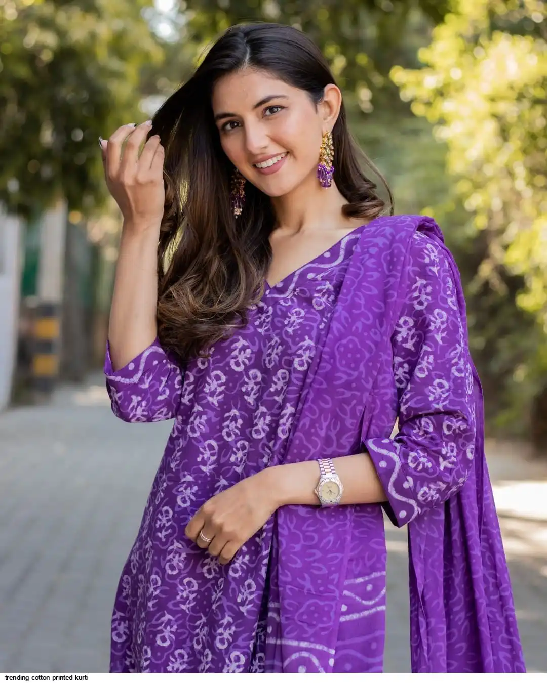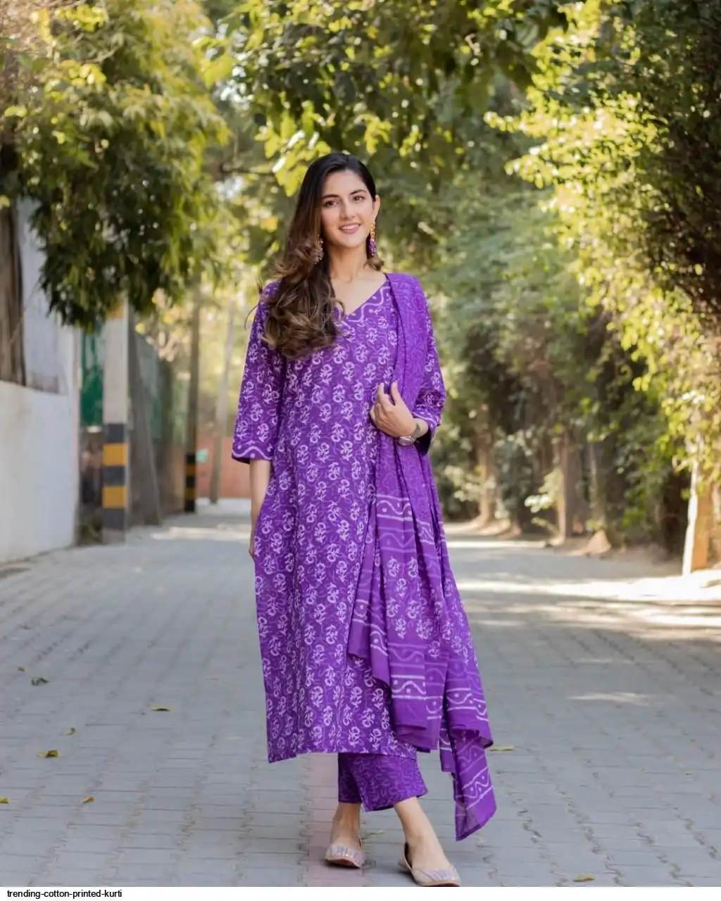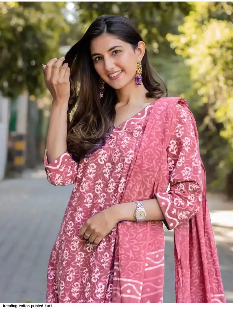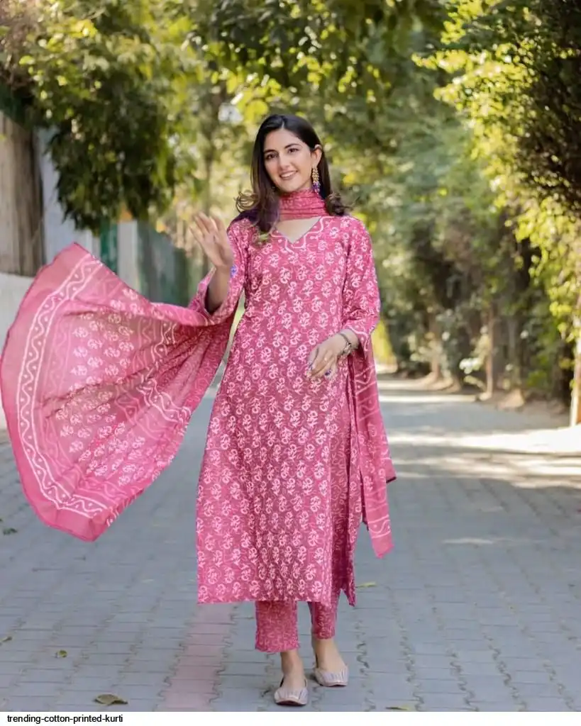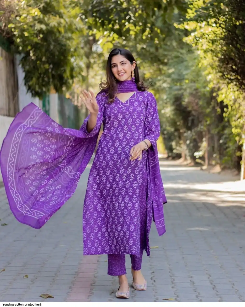 New Trending Cotton Suit set in Printed Kurti Pant with Dupatta