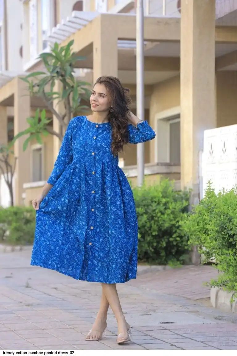 TRENDY COTTON CAMBRIC PRINTED DRESS 02