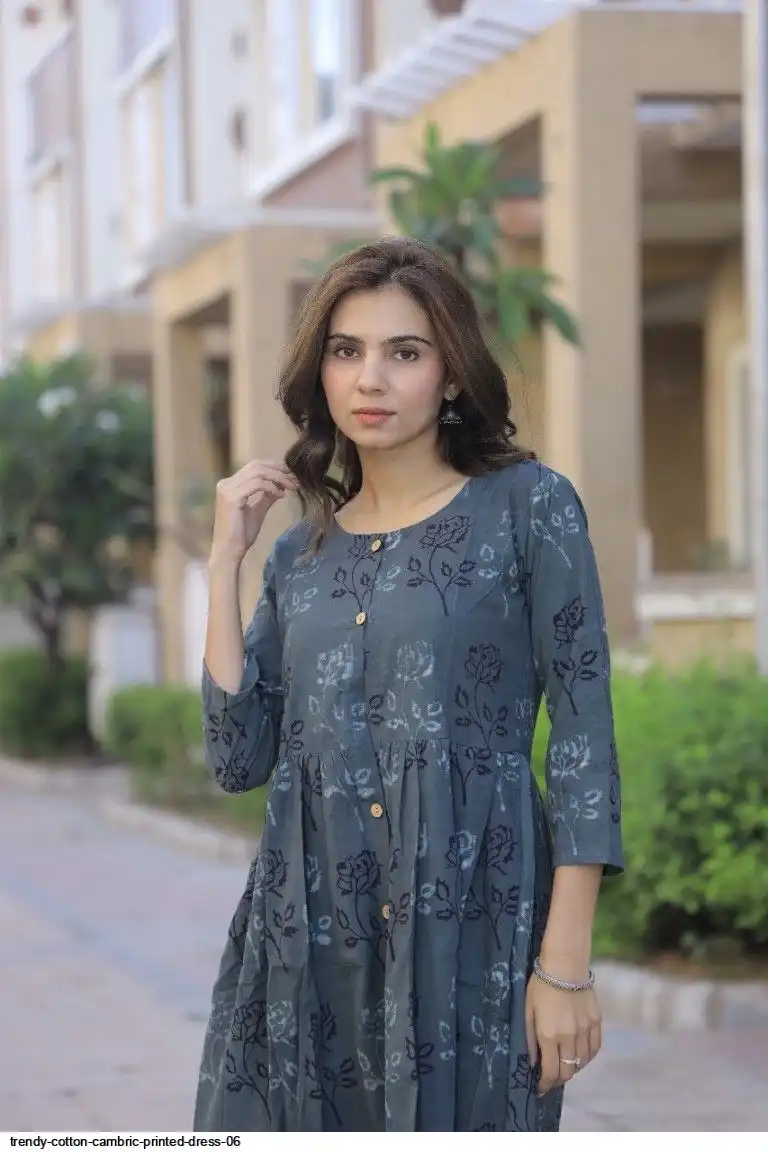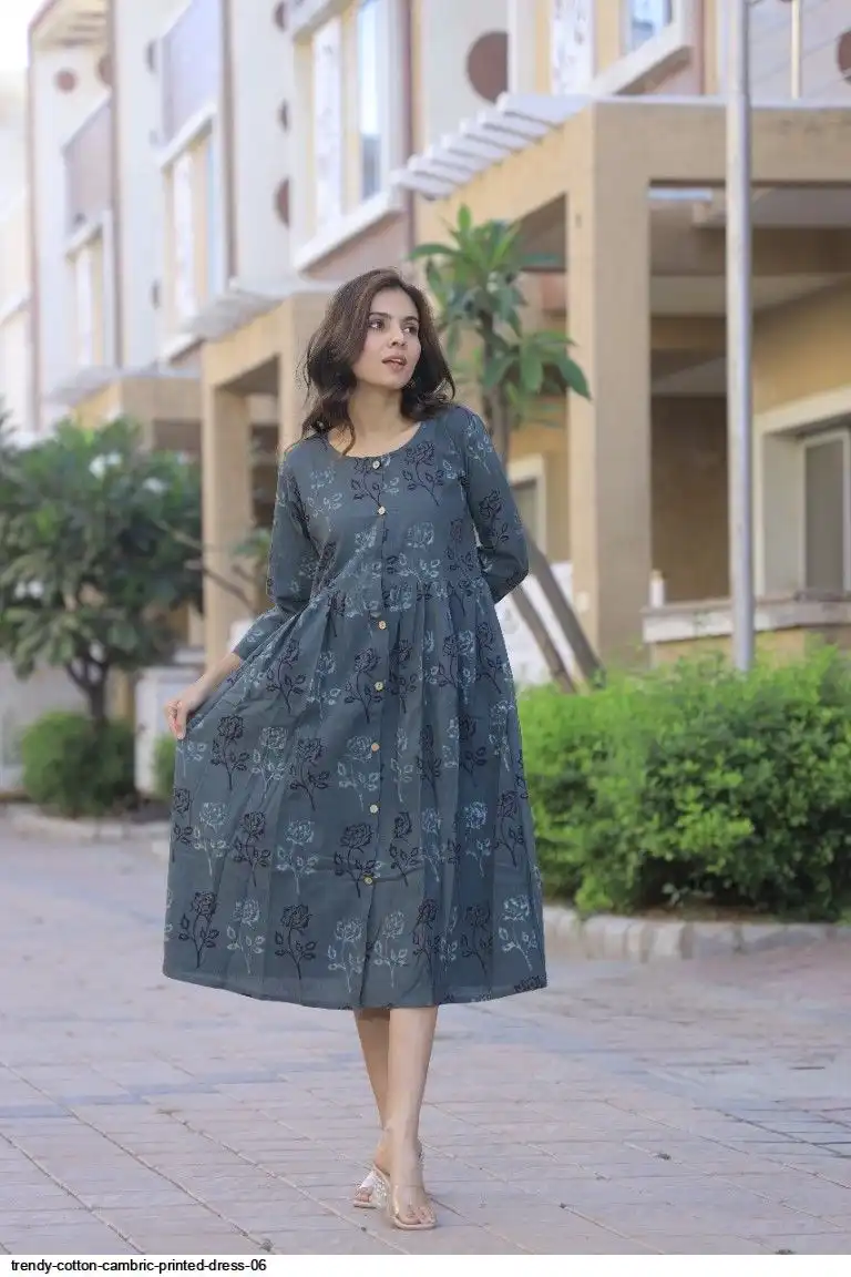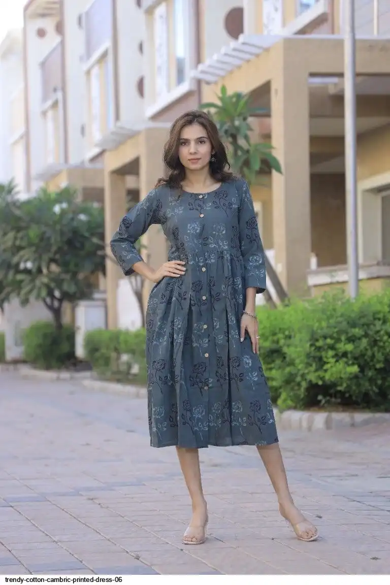 TRENDY COTTON CAMBRIC PRINTED DRESS 06