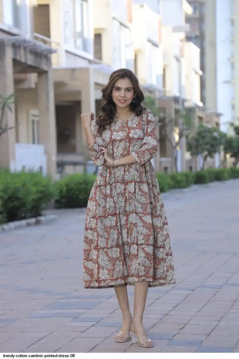 TRENDY COTTON CAMBRIC PRINTED DRESS 08